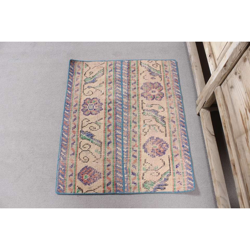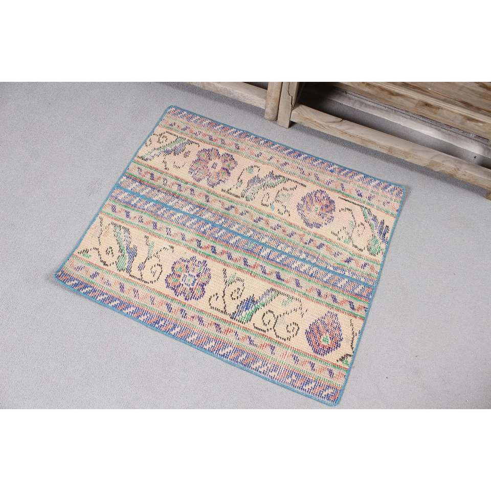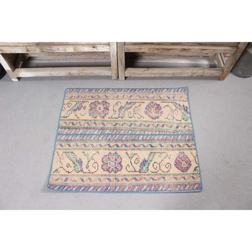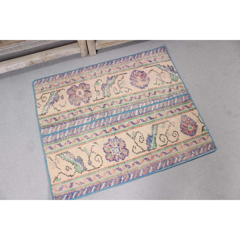 Alfombra Turca Vintage de 2.3x2.8 pies, Alfombra Pequeña de Lana Azul con Diseño de Camuflaje