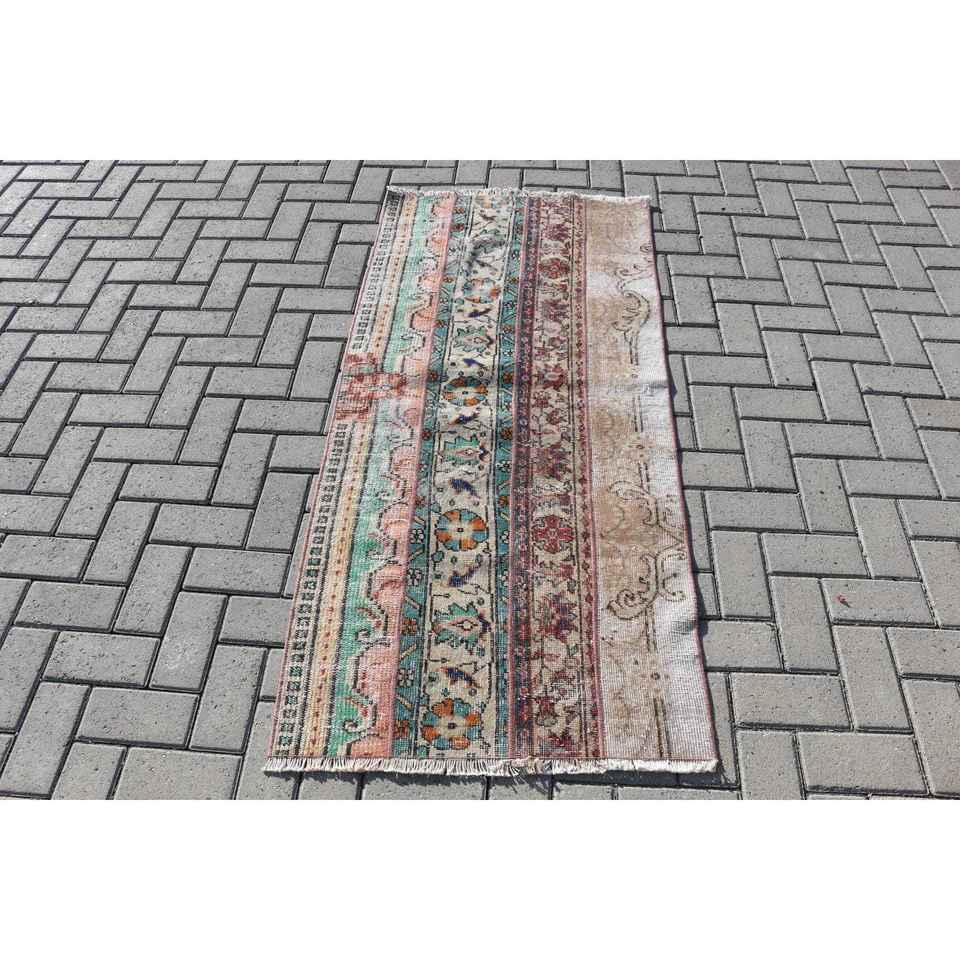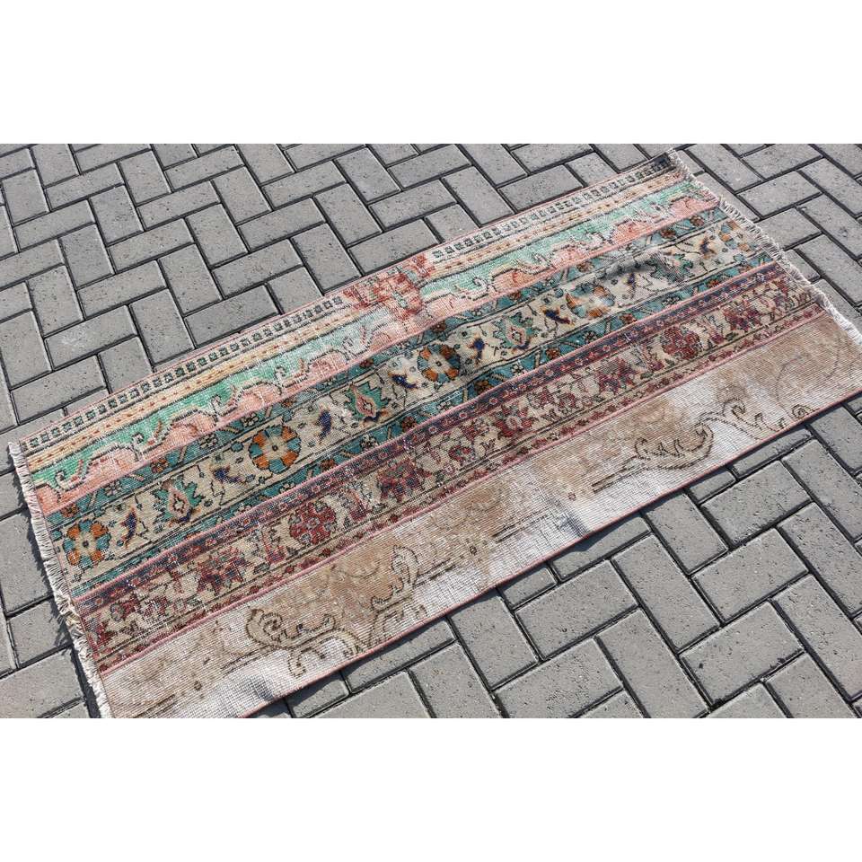 Alfombra Turca Vintage de 2.4x5.3 pies, Alfombra de Lana Azul con Pequeños Motivos Florales