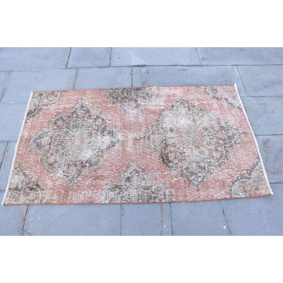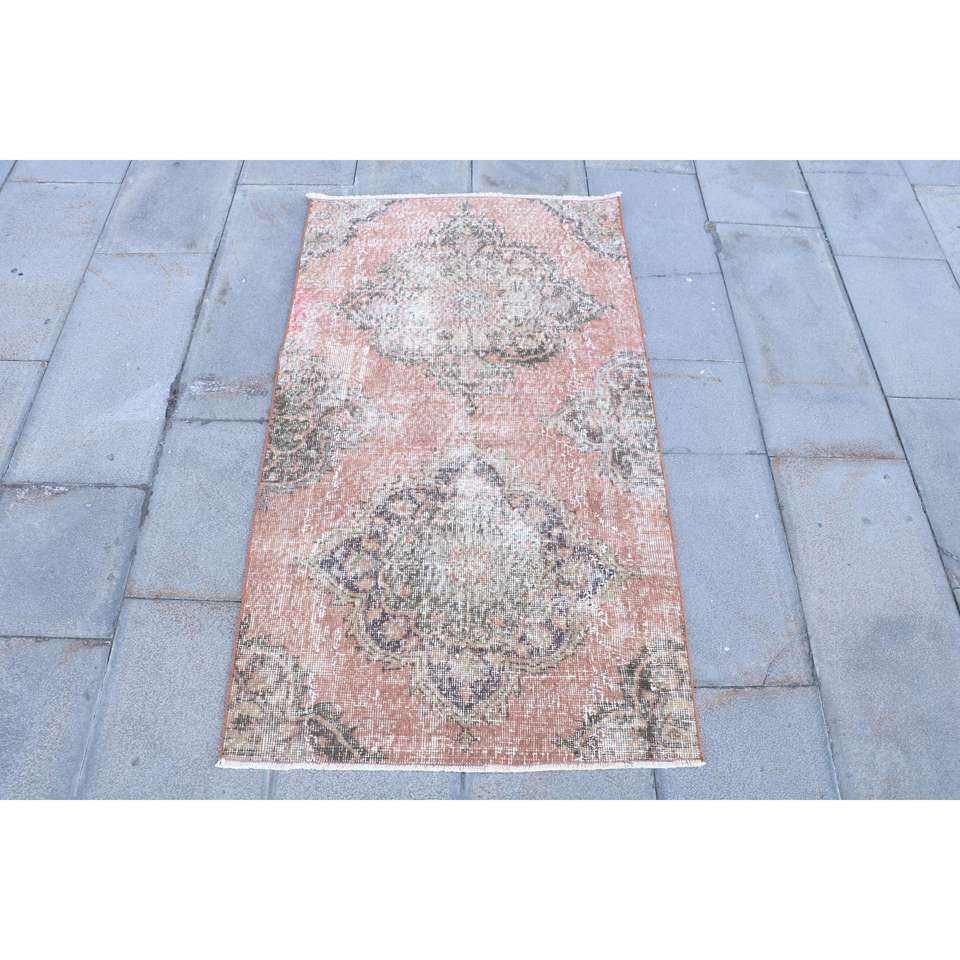 Alfombra Turca Vintage, Alfombra Pequeña de 2.5x4.5 pies, Alfombra Roja con Diseño de Patchwork