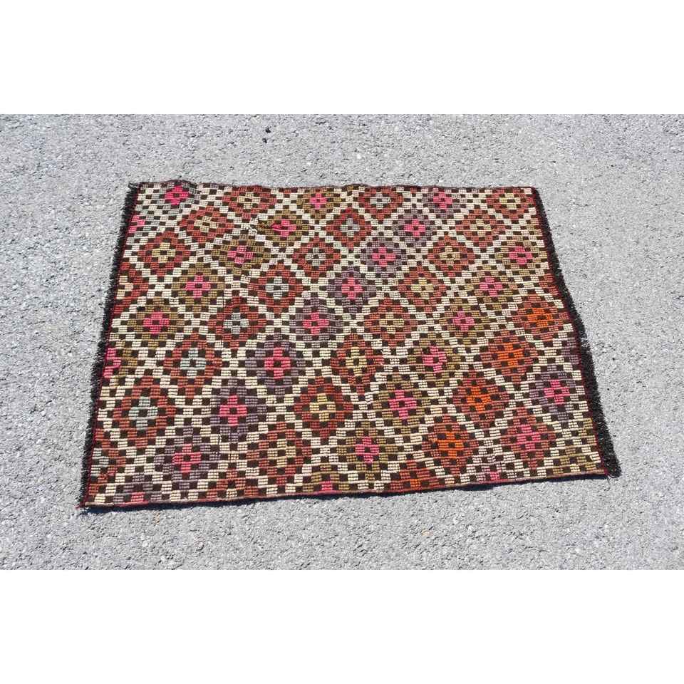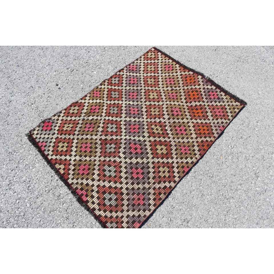 Alfombra turca vintage, alfombra Kilim de 2.7x3.7 pies, alfombra de lana roja marrón con motivos de plantas y árboles