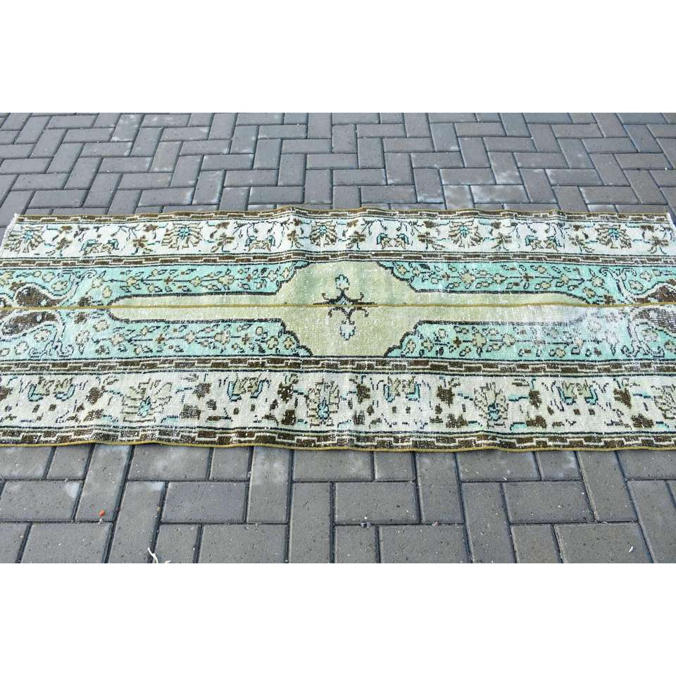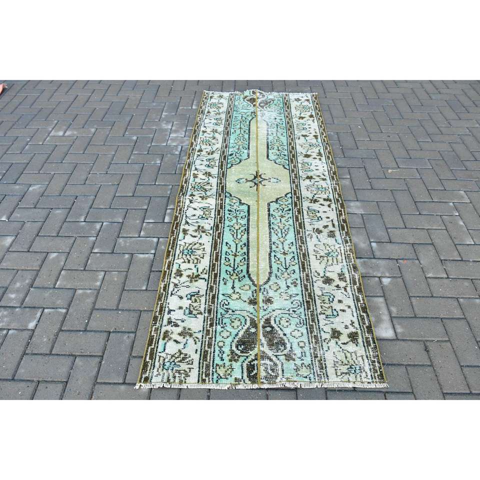 Alfombra Turca Vintage de Lana Azul, 2.9x7.4 pies (88x226 cm)