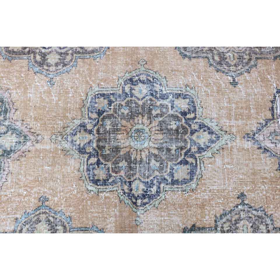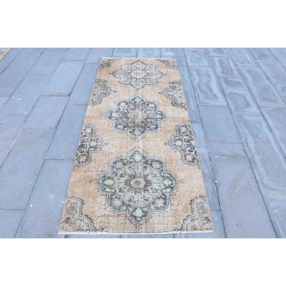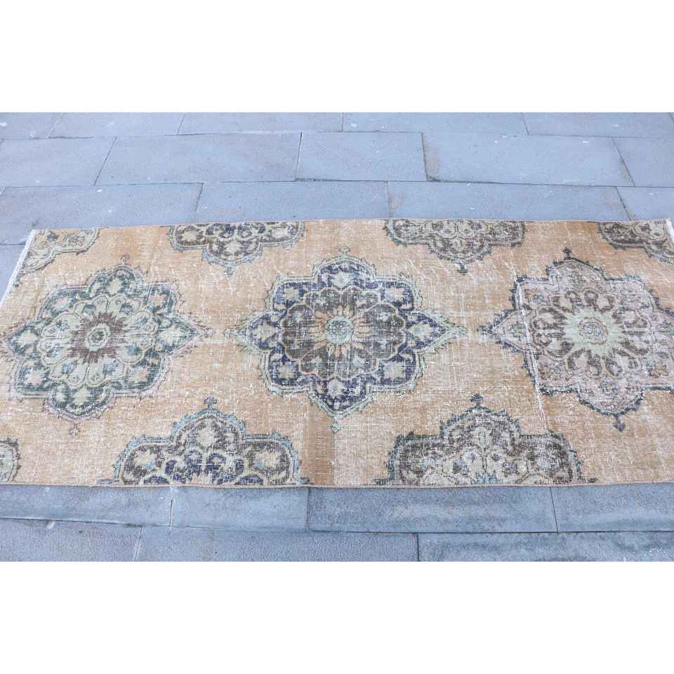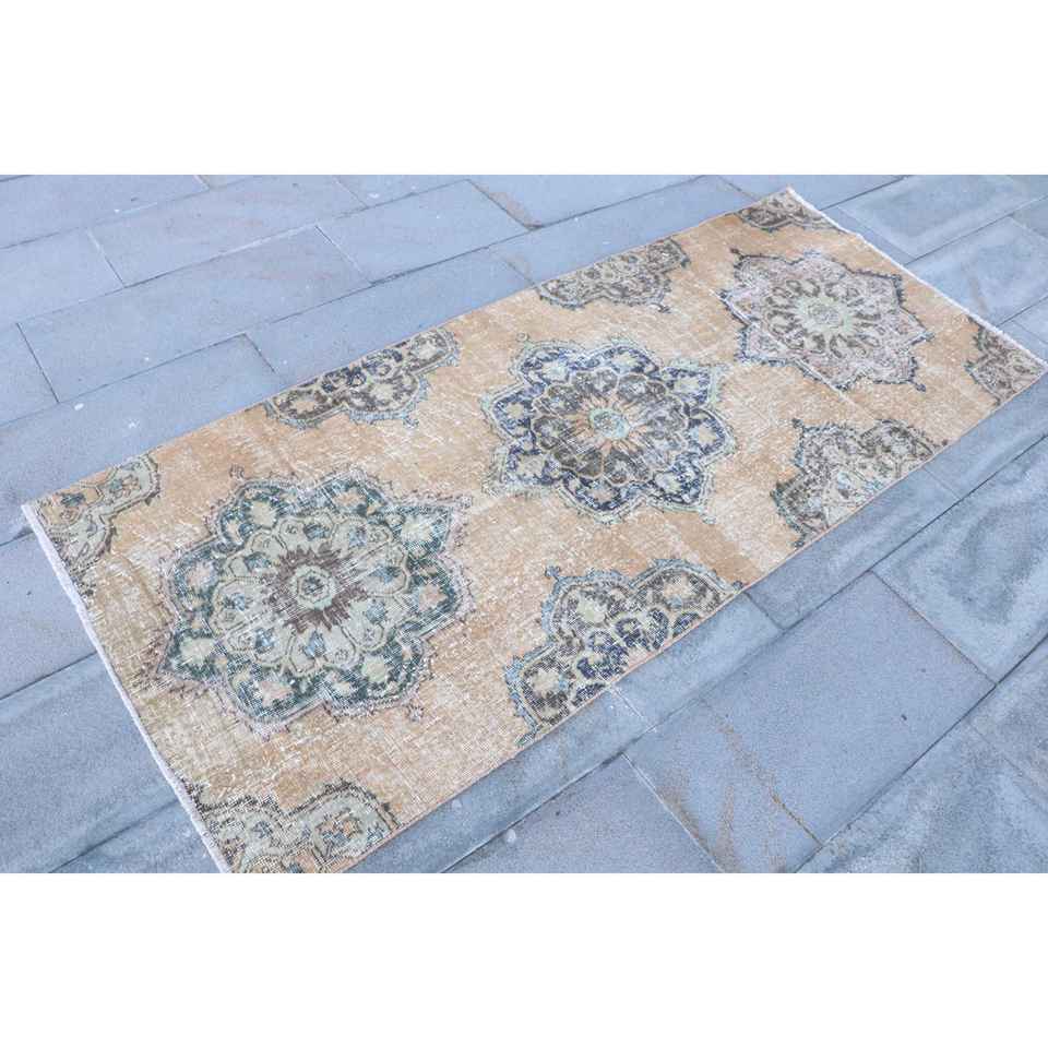 Alfombra Turca Vintage, Alfombra de 2.9x7 pies, Alfombra a Rayas Marrón y Azul