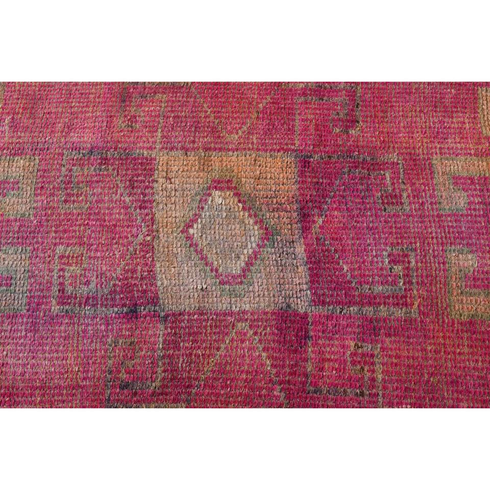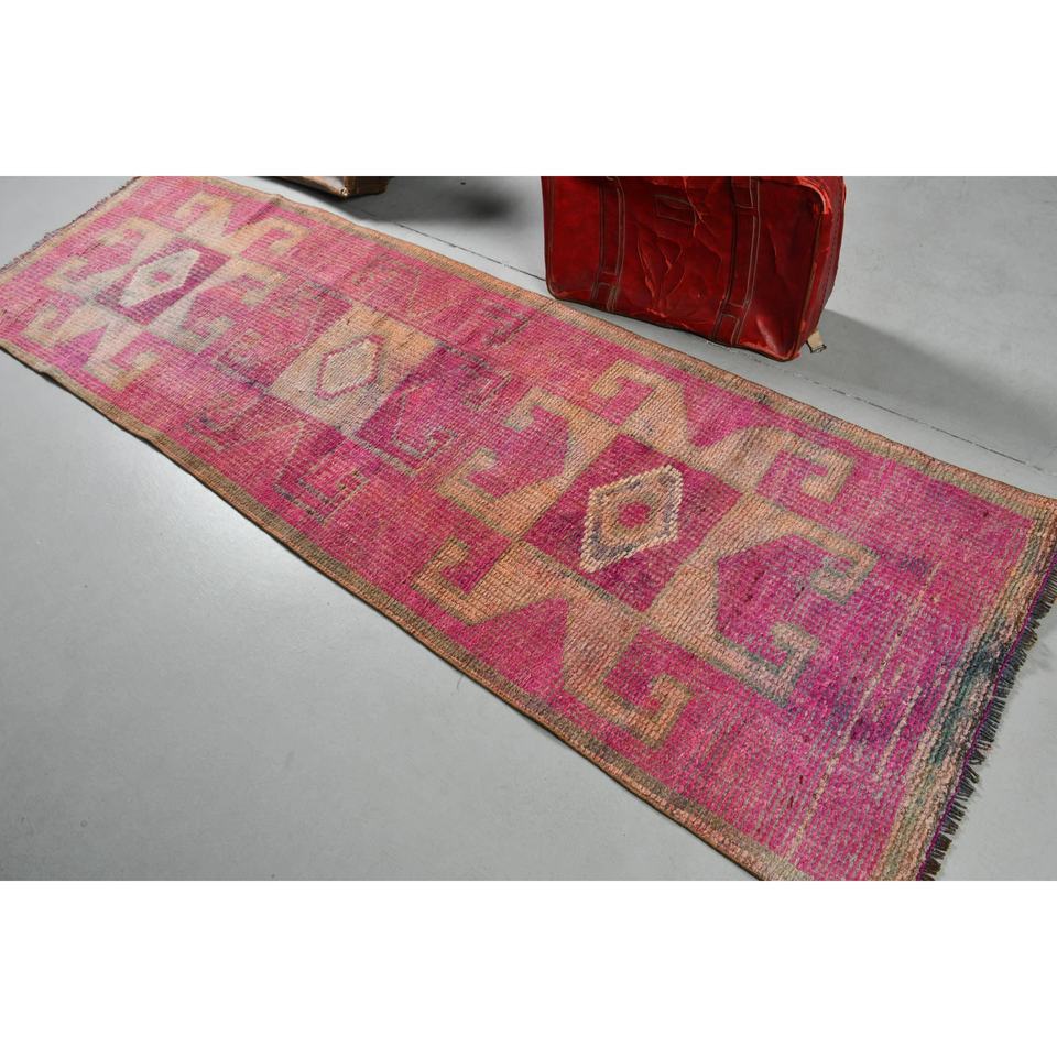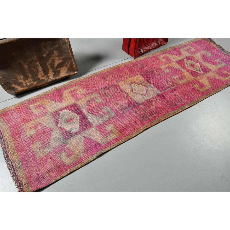 Alfombra Turca Vintage, Alfombra de Pasillo de 2.9x9.2 pies, Alfombra de Lana a Rayas Rosa y Marrón