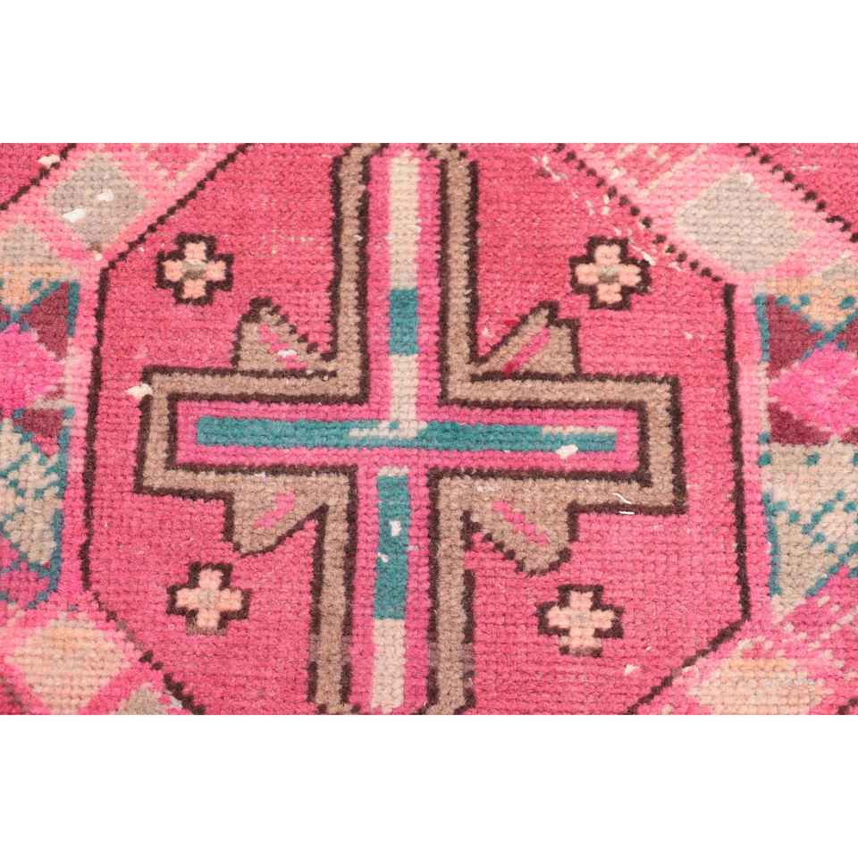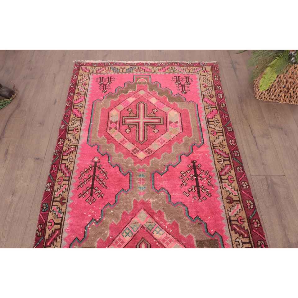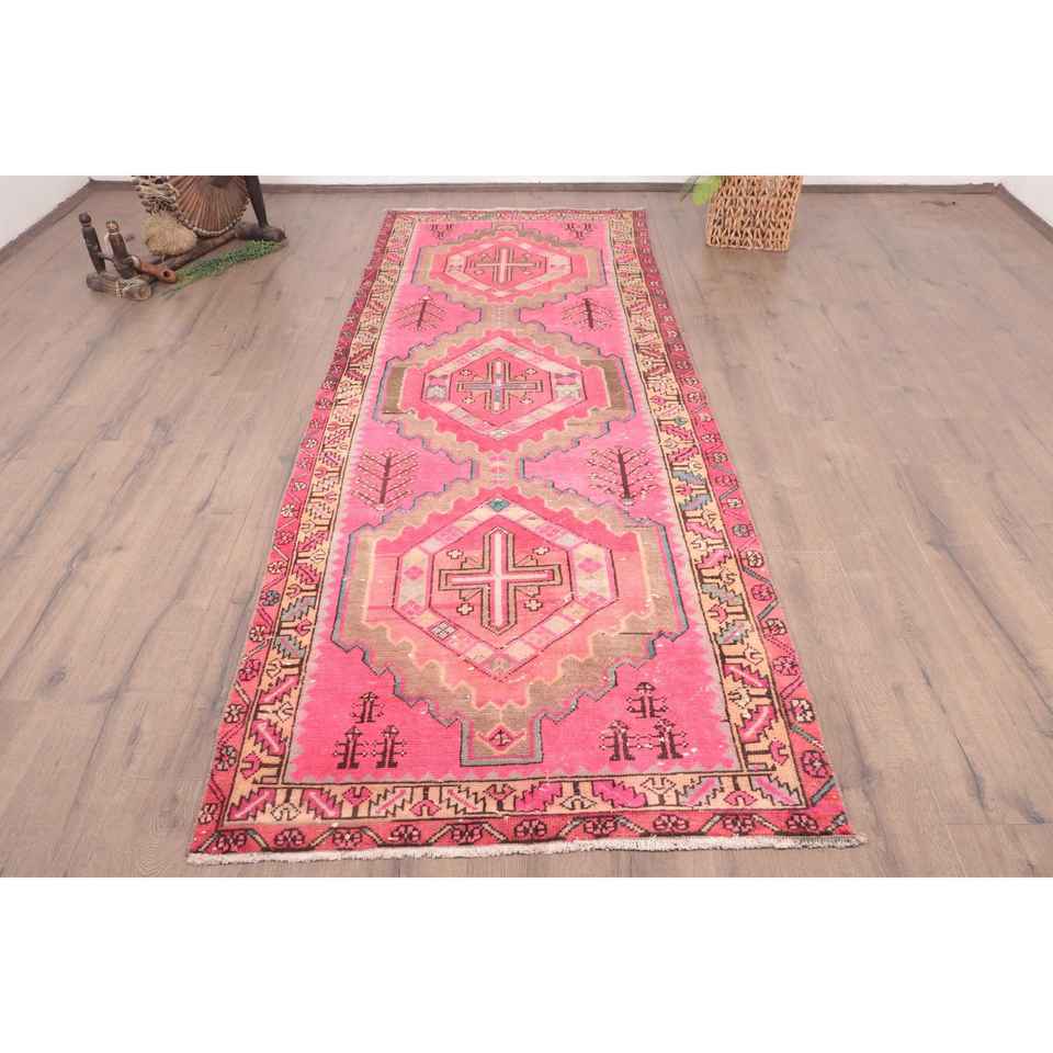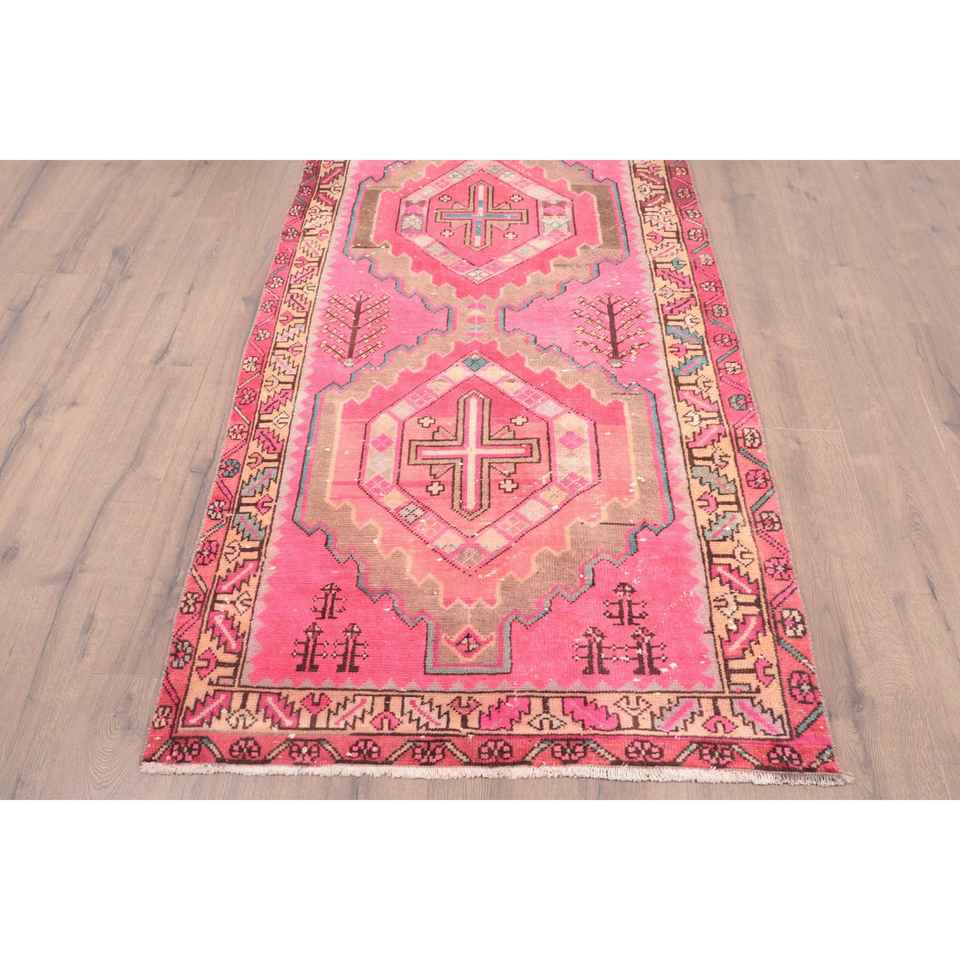 Alfombra Turca Vintage, Alfombra de Pasillo de 3.4x9.4 pies, Alfombra de Lana con Diseño de Camuflaje Rojo y Azul