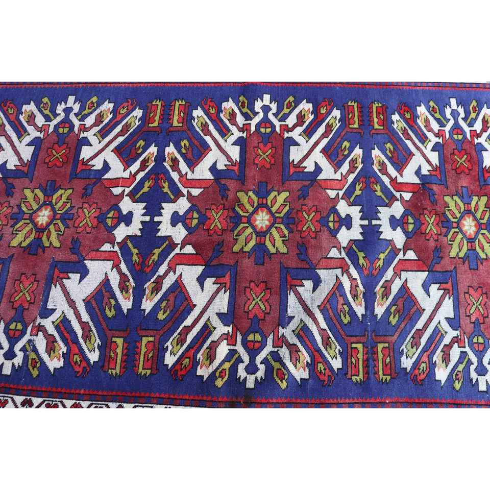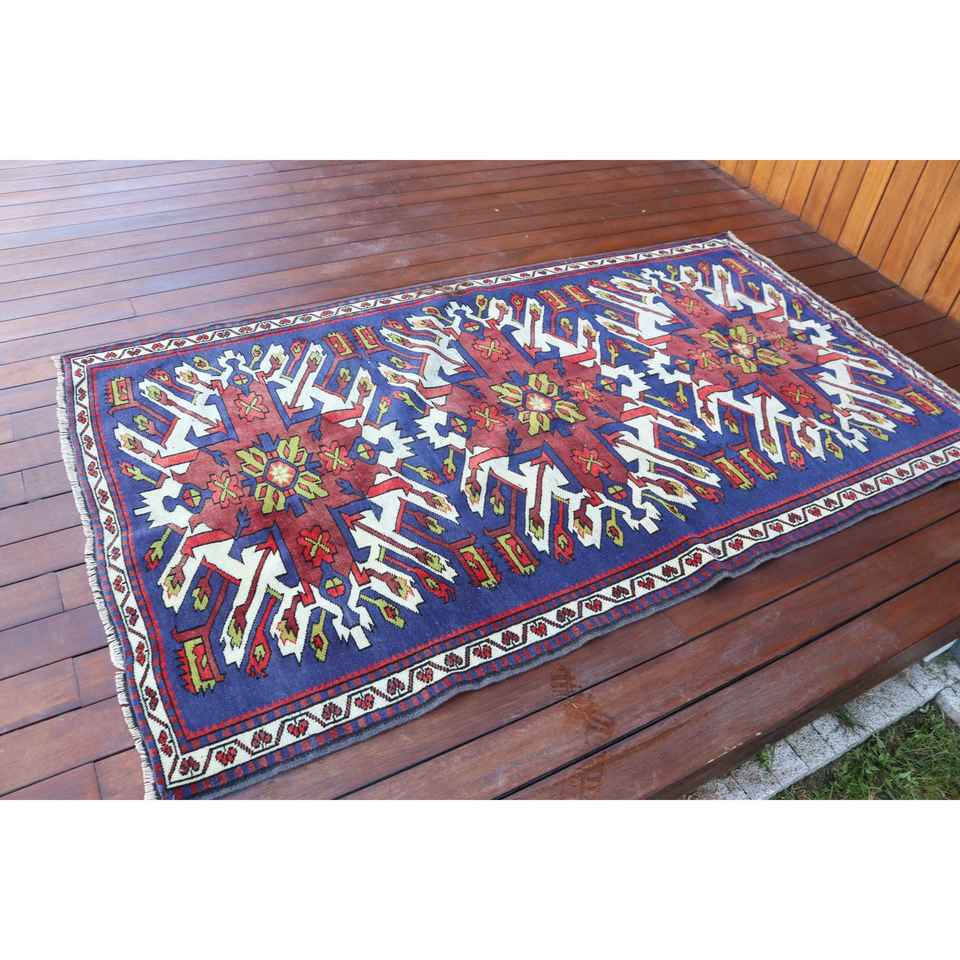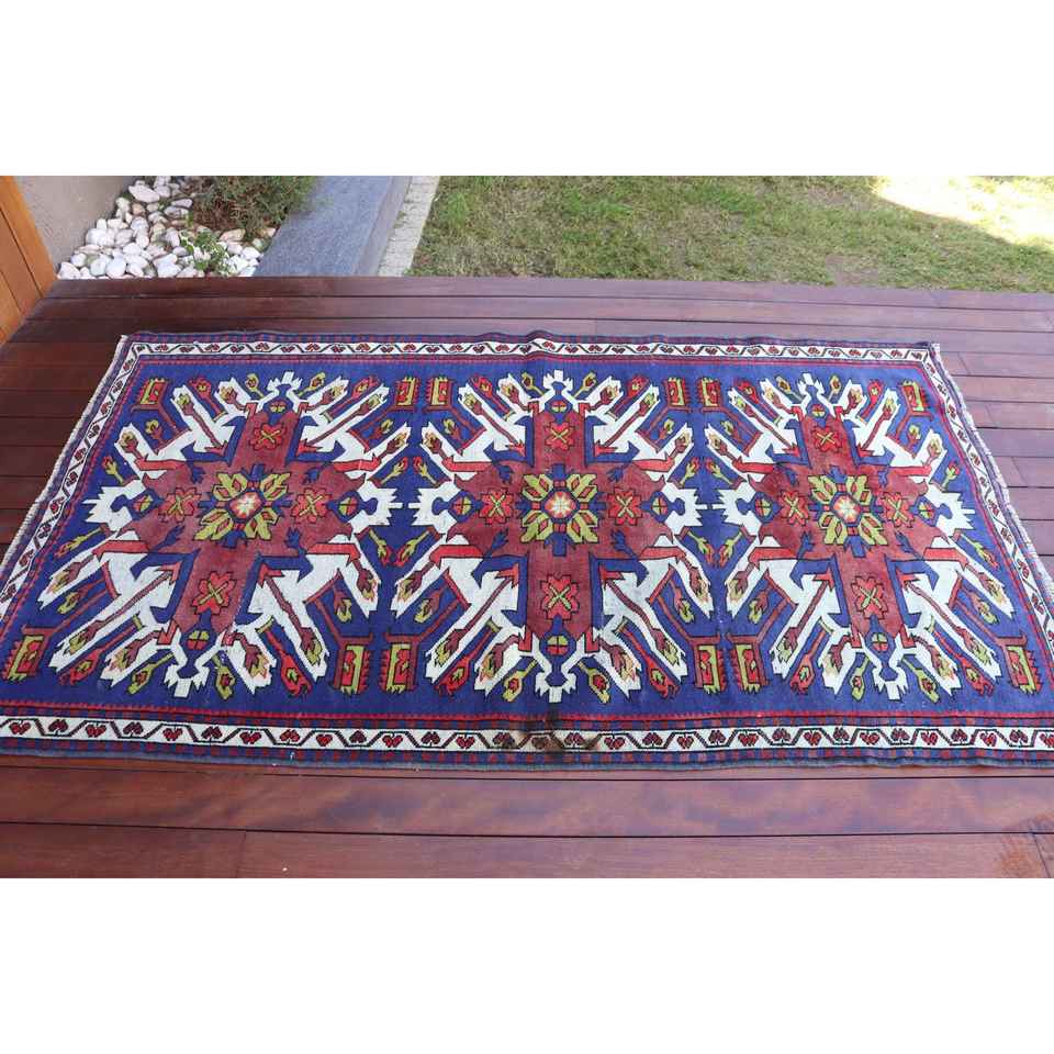 Alfombra turca vintage de 3.7x6.5 pies (113x198 cm), alfombra azul con motivos de plantas y árboles