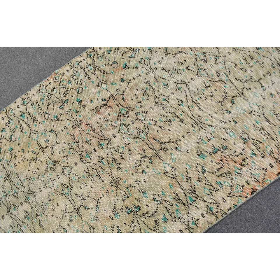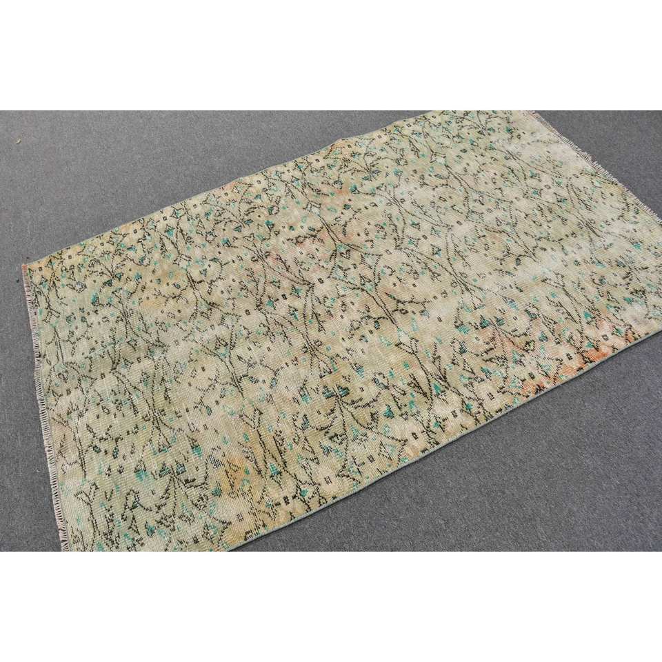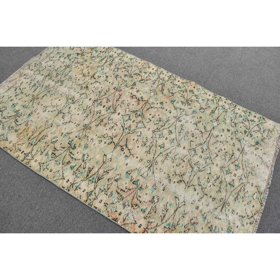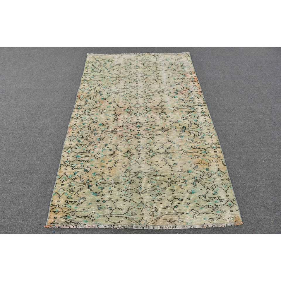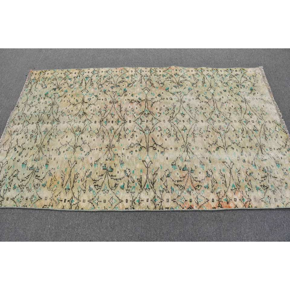 Alfombra turca vintage de 3,8x6,3 pies, área grande clásica, lana verde y Beige con patrón rectangular abstracto, respaldo de látex para uso en el pasillo