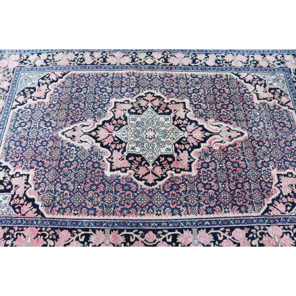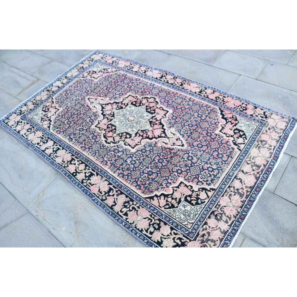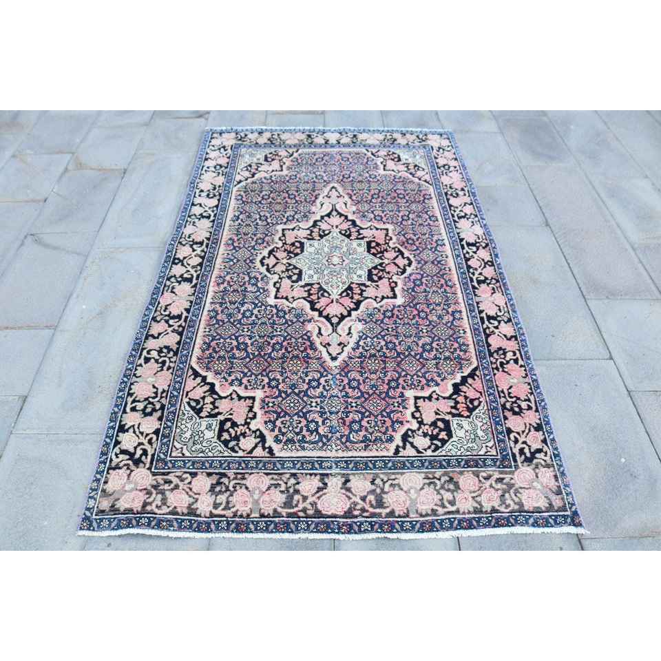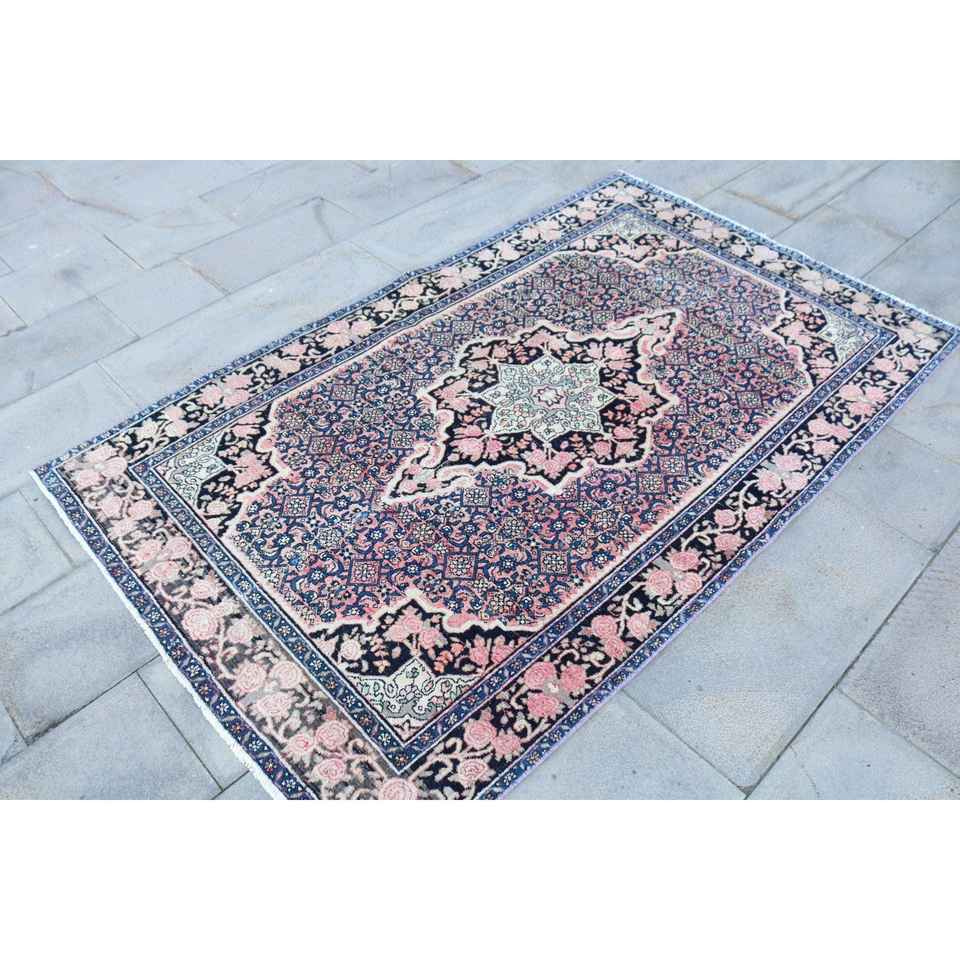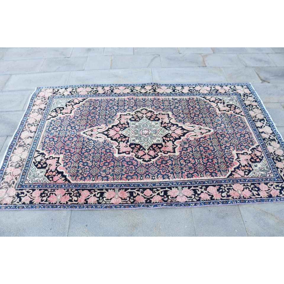 Alfombra Turca Vintage de 4.2x6.7 pies, Alfombra Azul Abstracta