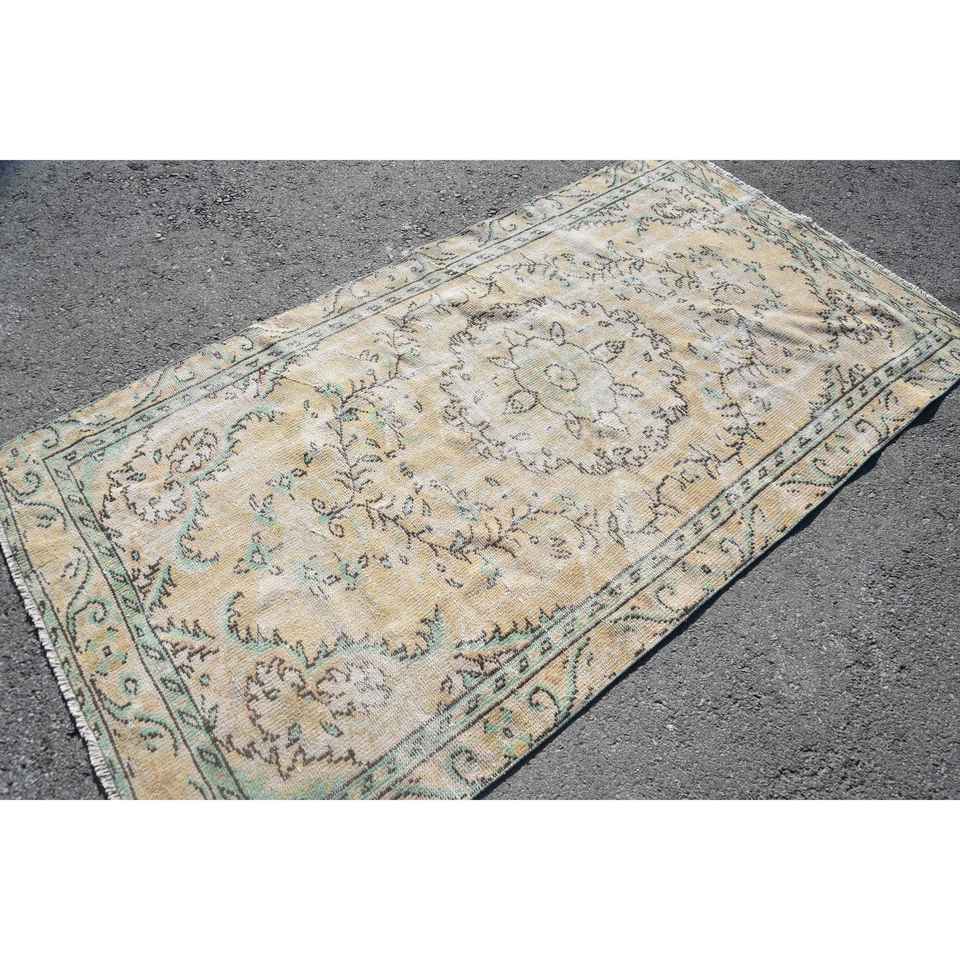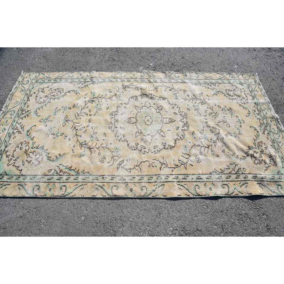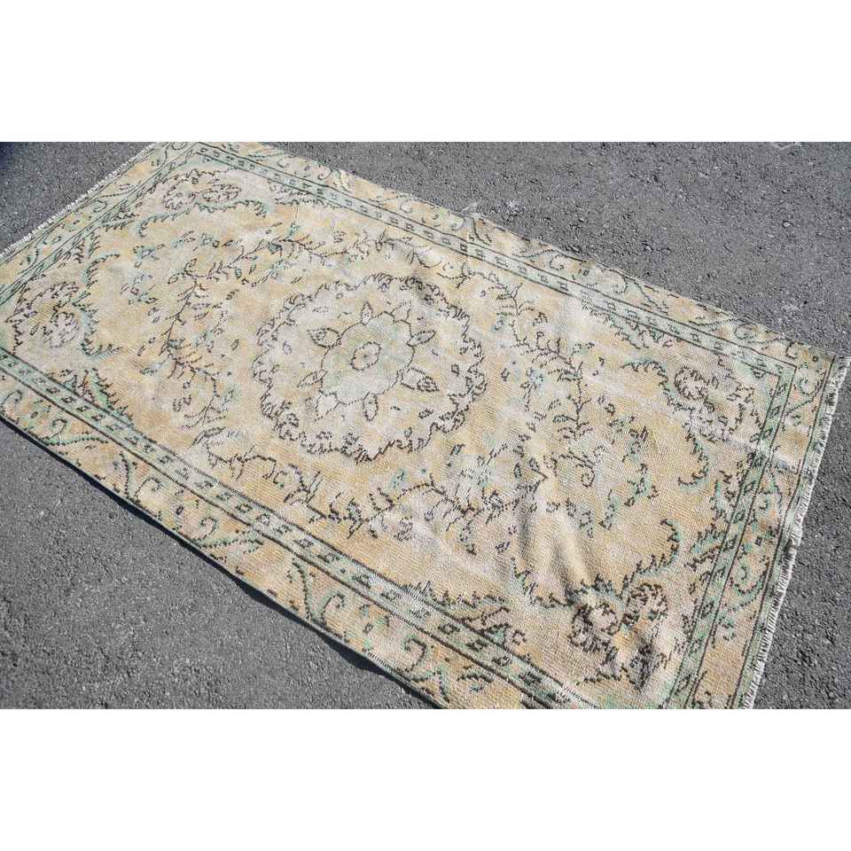 Alfombra Turca Vintage, Alfombra de 4.2x7.8 pies, Alfombra Beige con Estampado Animal