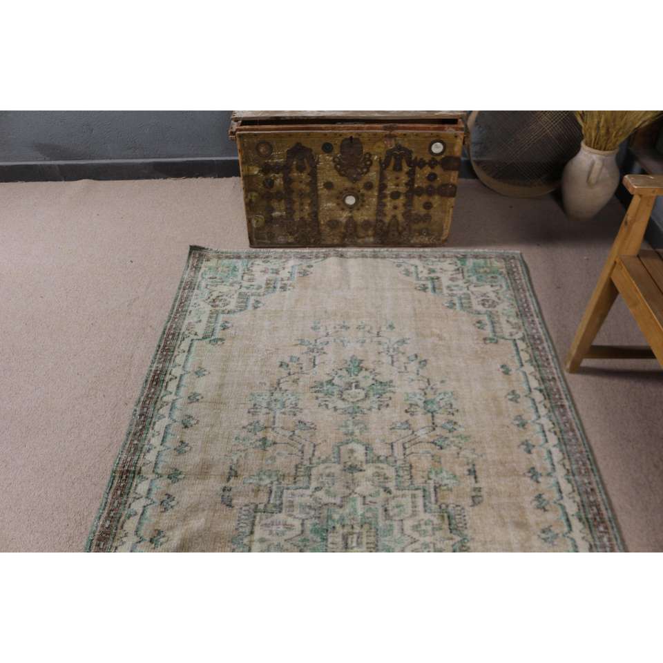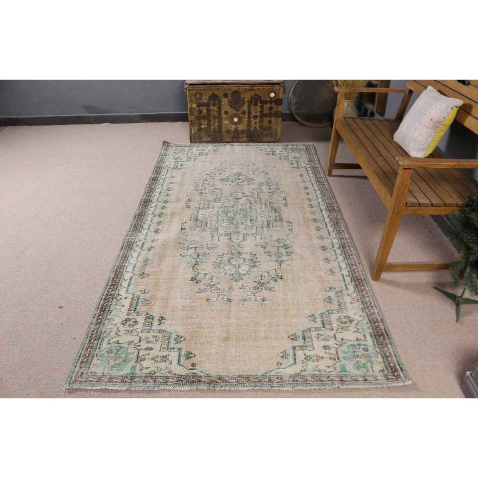 Alfombra Turca Vintage, Alfombra de Lana Marroquí Verde de 4.3x8.1 pies