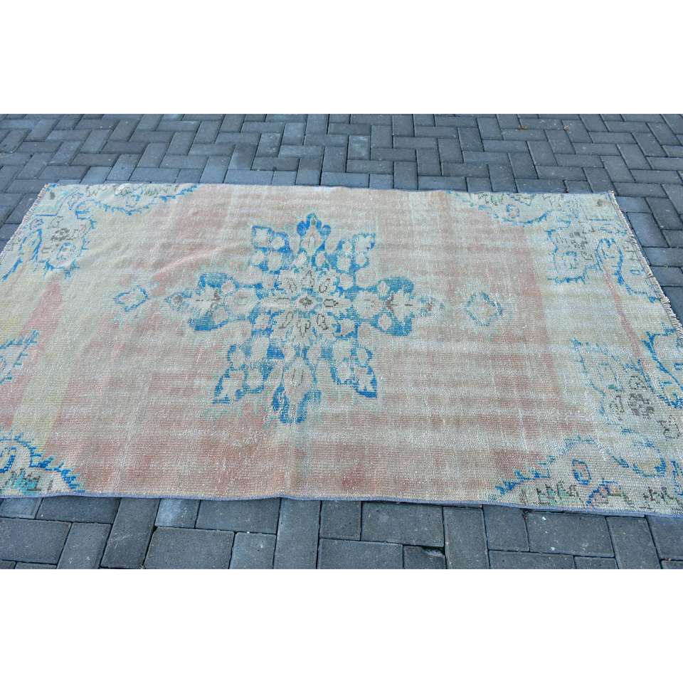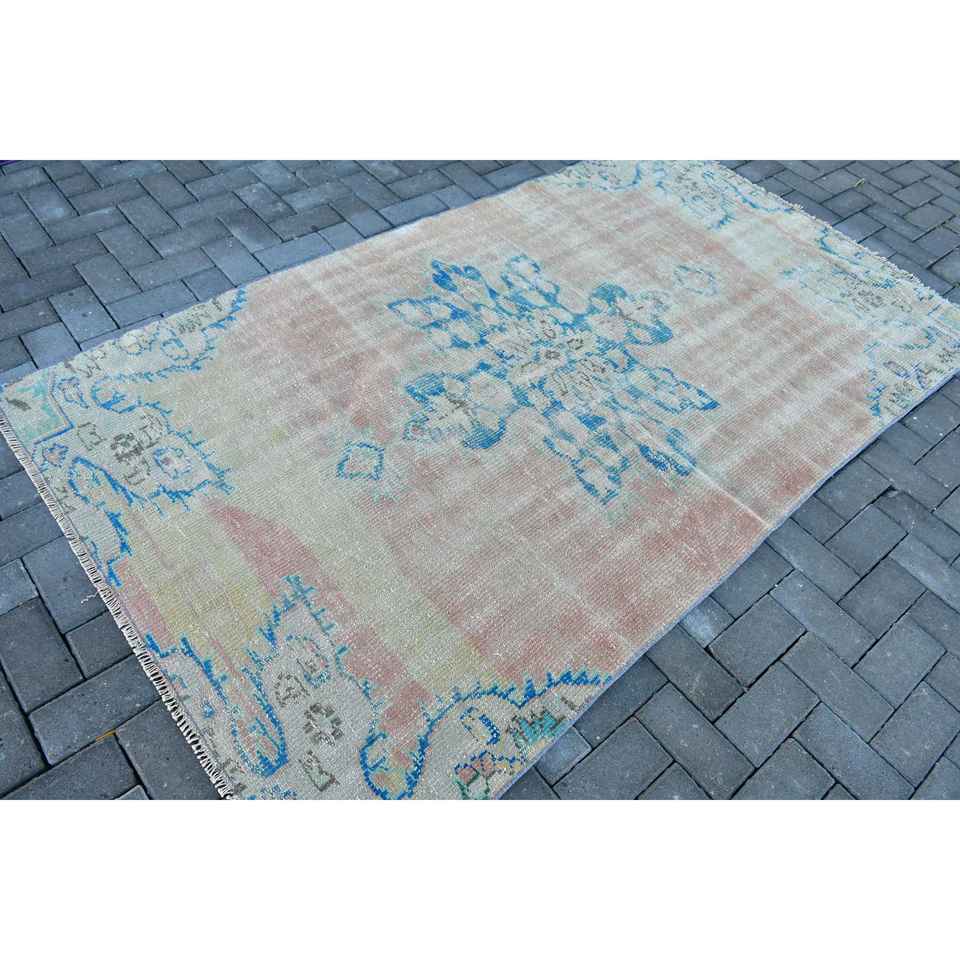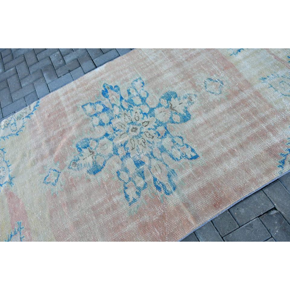Alfombra Turca Vintage de 4.4x7.5 pies (135x230 cm), Alfombra Azul con Diseño de Patchwork