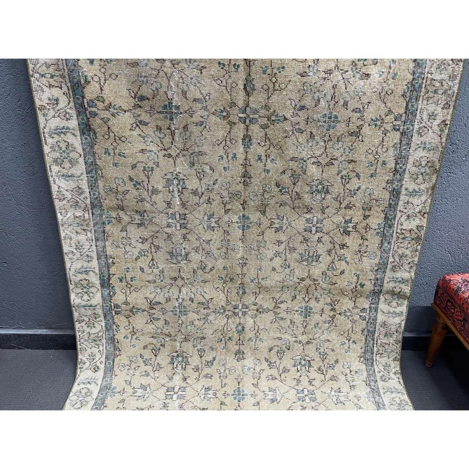 Alfombra Turca Vintage de 4.5x7.9 pies, Alfombra Azul de Lana Marroquí