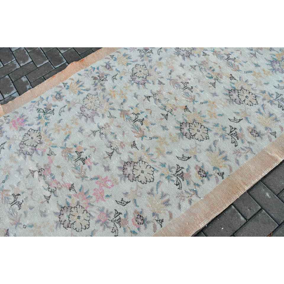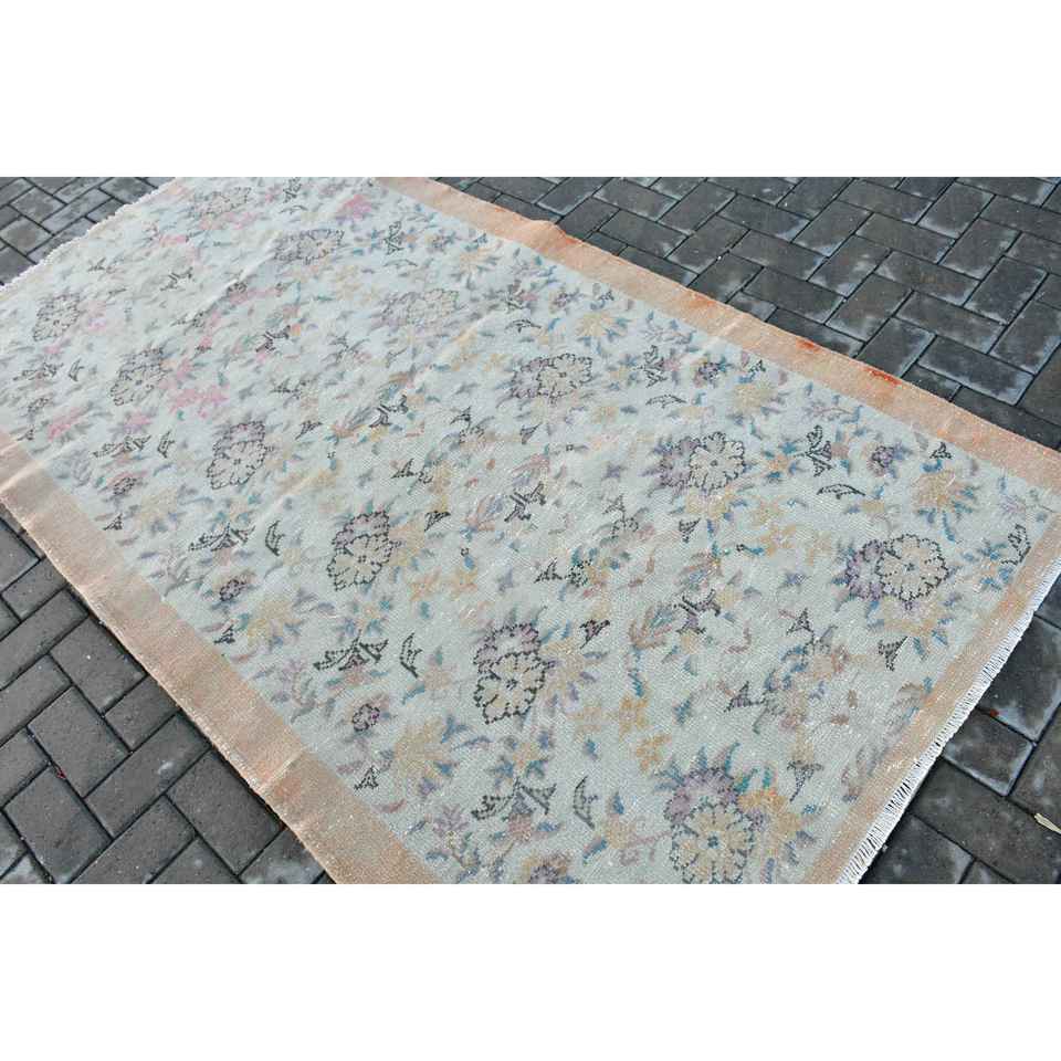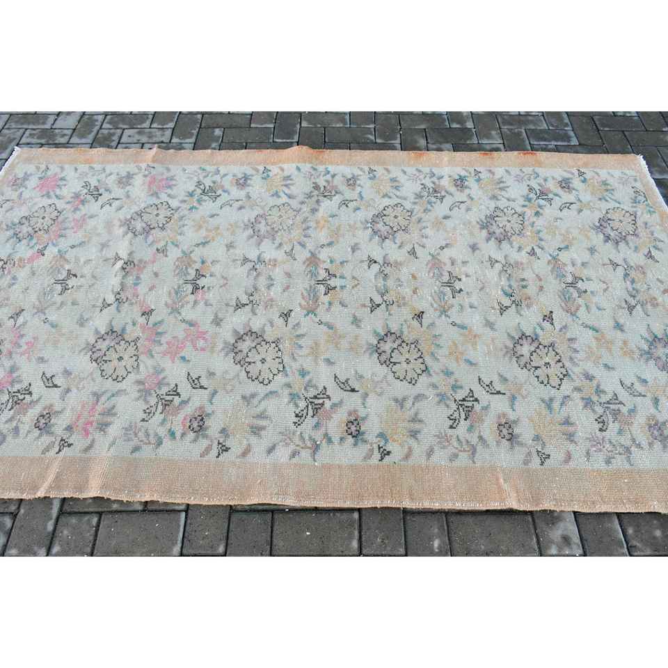 Alfombra Turca Vintage de 4.5x7.9 pies (136x242 cm), Alfombra de Lana con Borde Azul