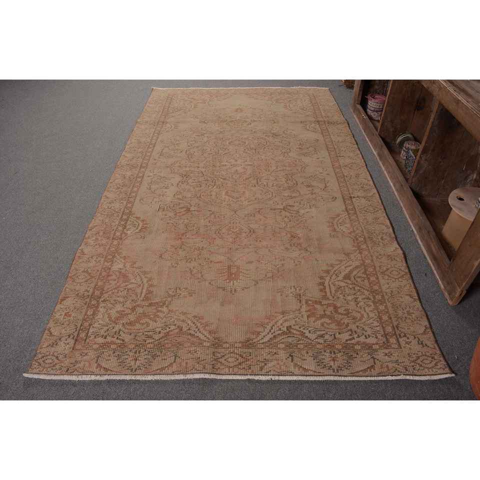 Alfombra turca Vintage de 4,7x8,2 pies, diseño de retales marrón beige, técnica de tejido plano de látex de lana para decoraciones de sala de estar para adolescentes