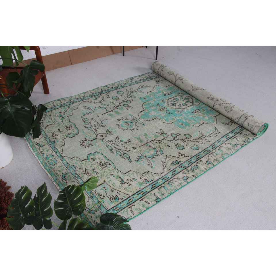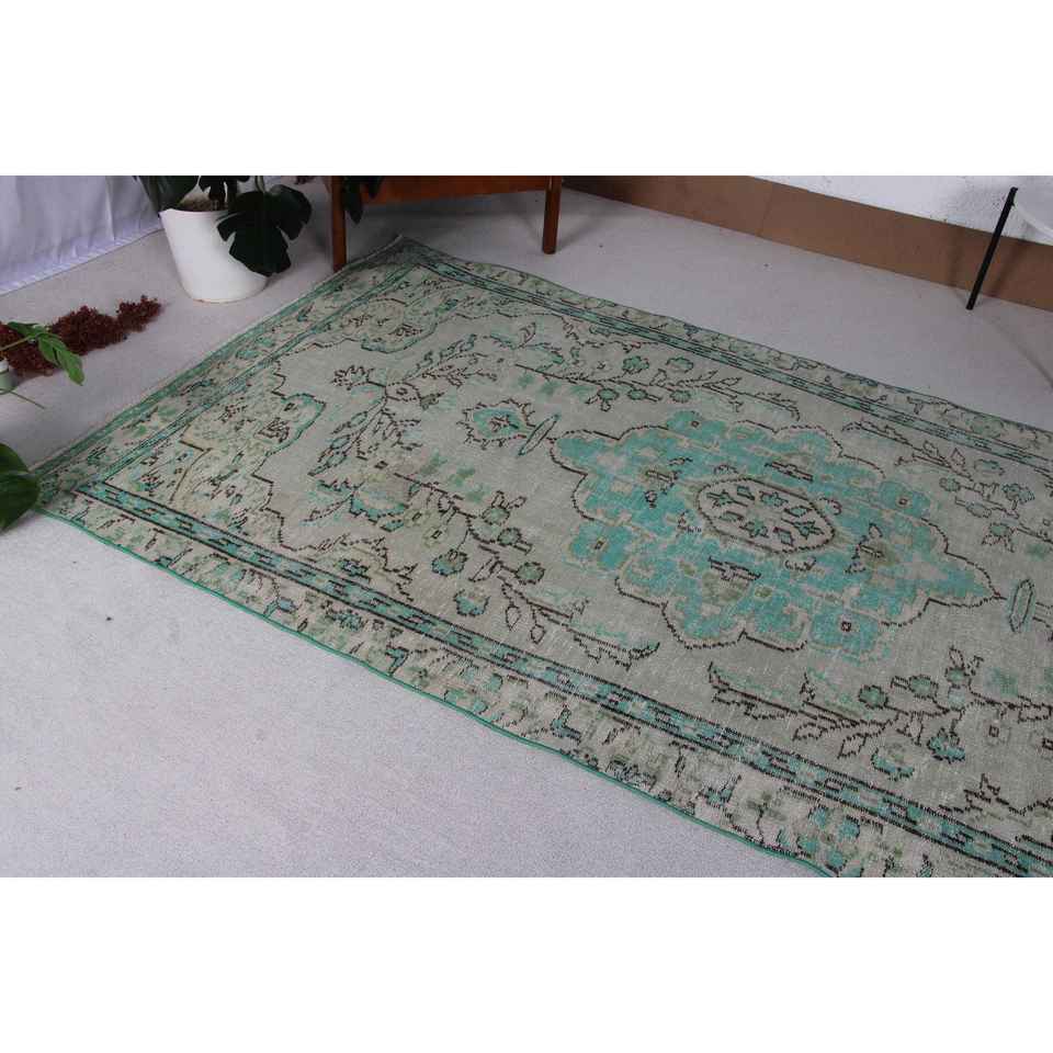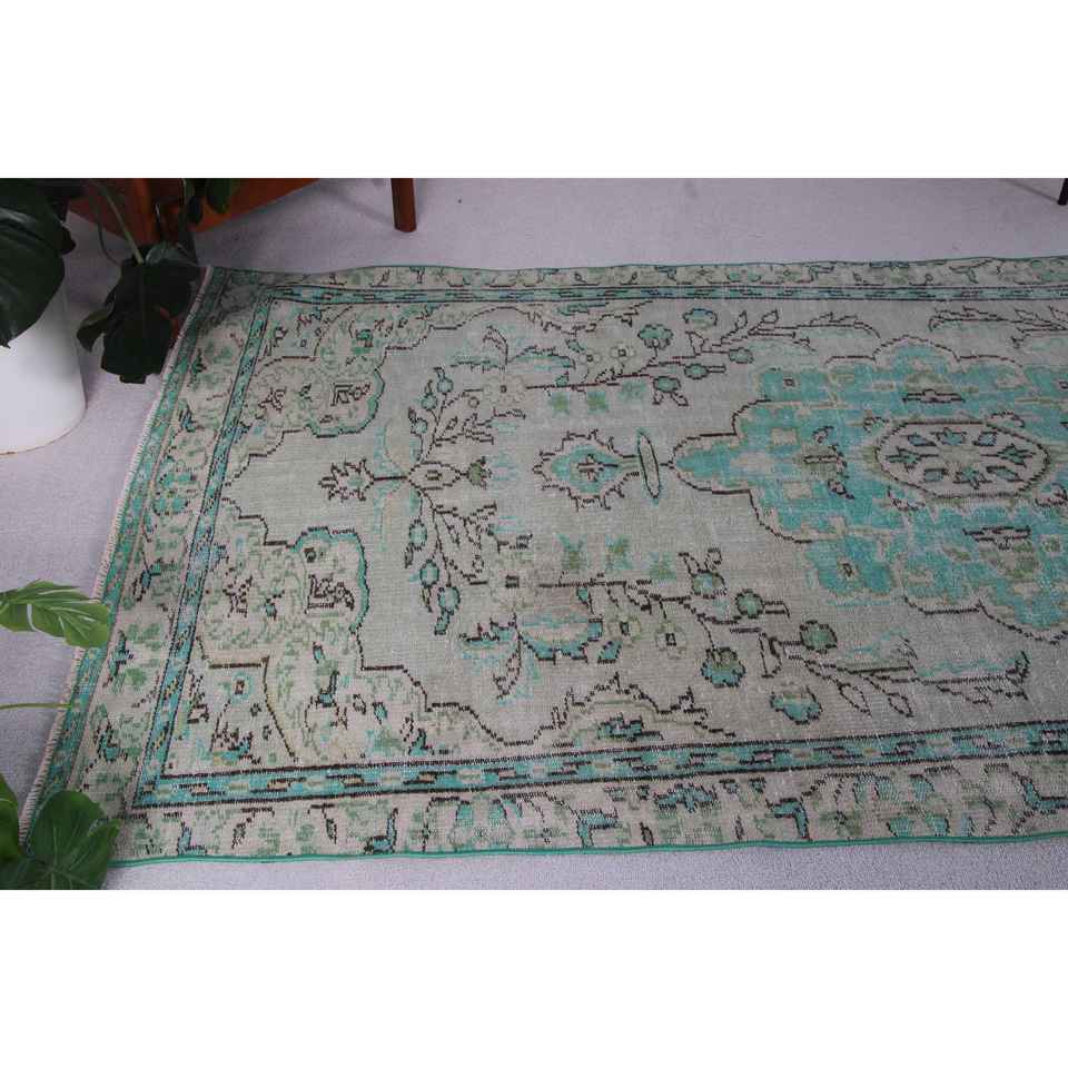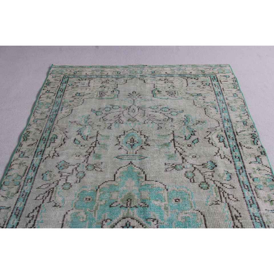 Alfombra Turca Vintage, Alfombra de Lana con Rayas Azules de 4.8x9.5 pies