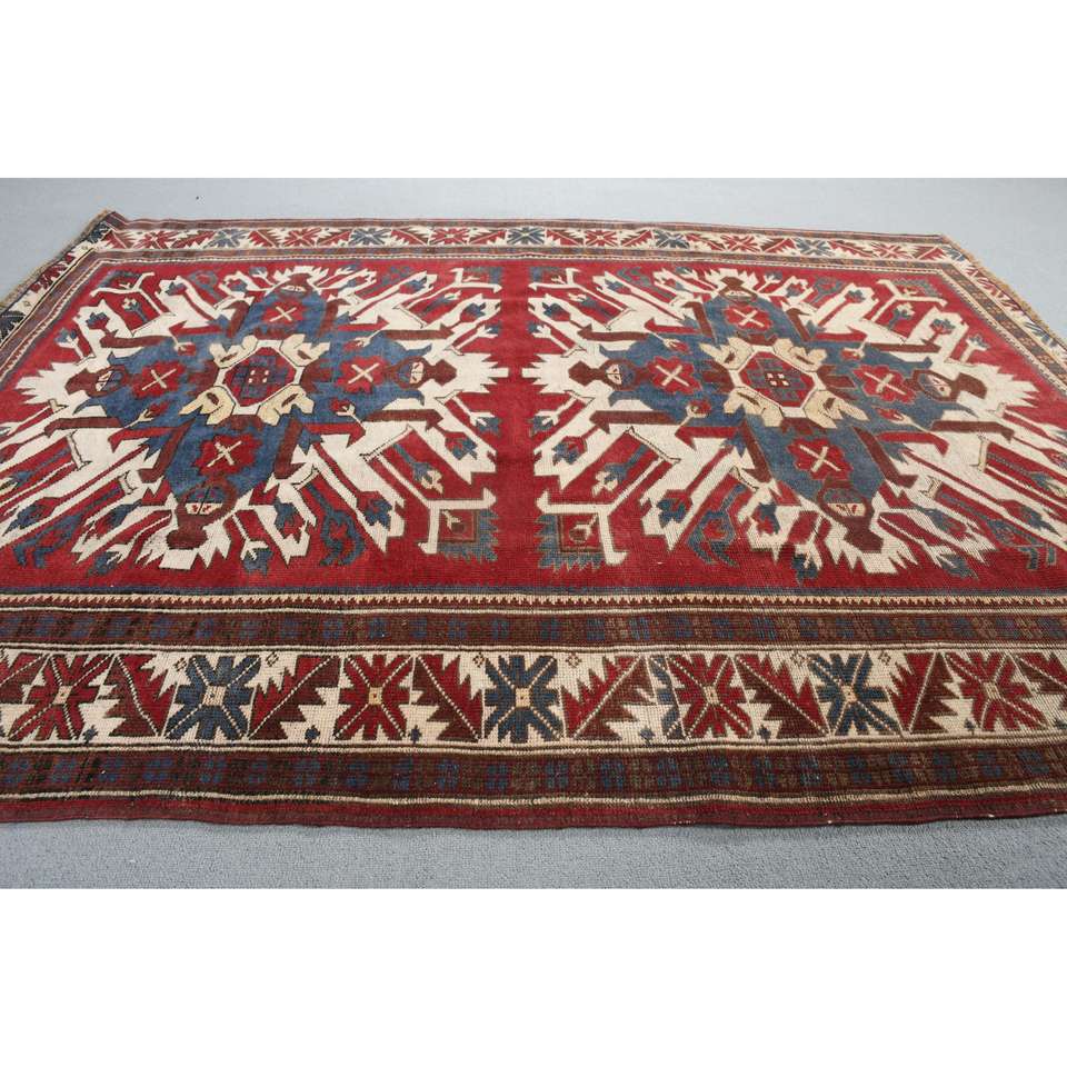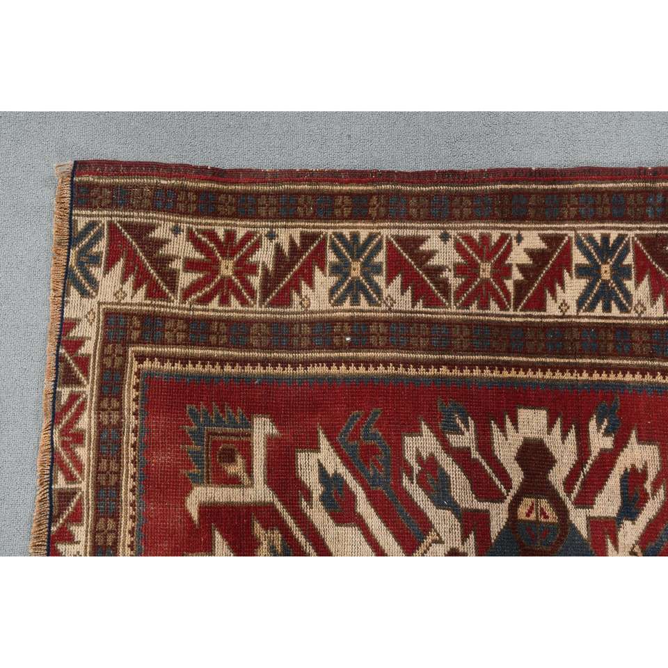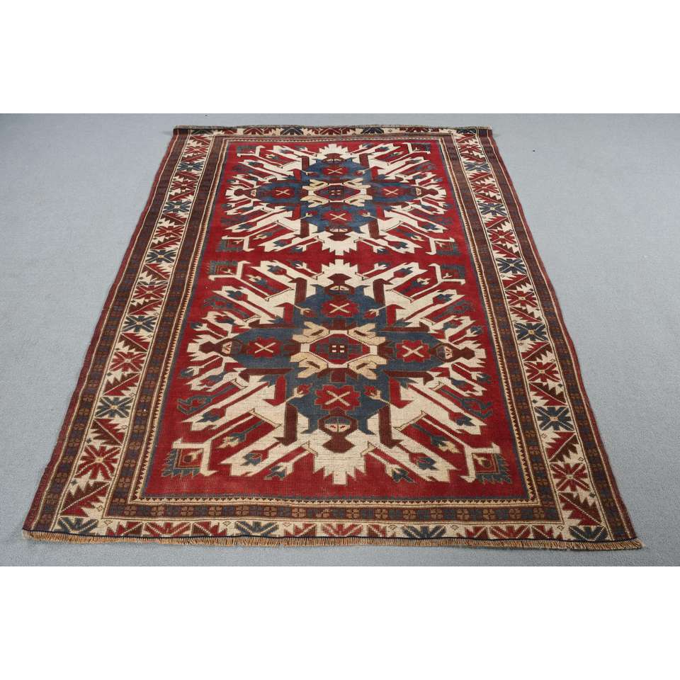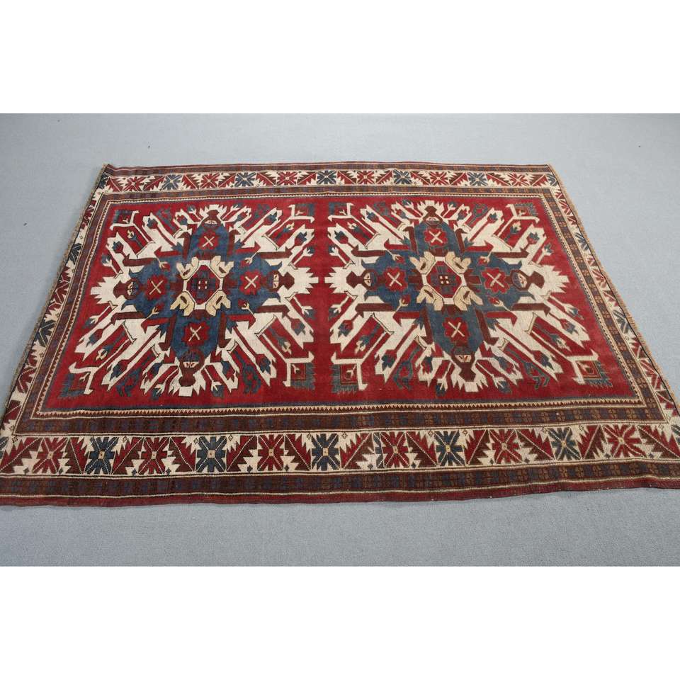 Alfombra Turca Vintage, Alfombra de 4,9x6,2 pies, Alfombra de Lana con Puntos Rojos y Azules