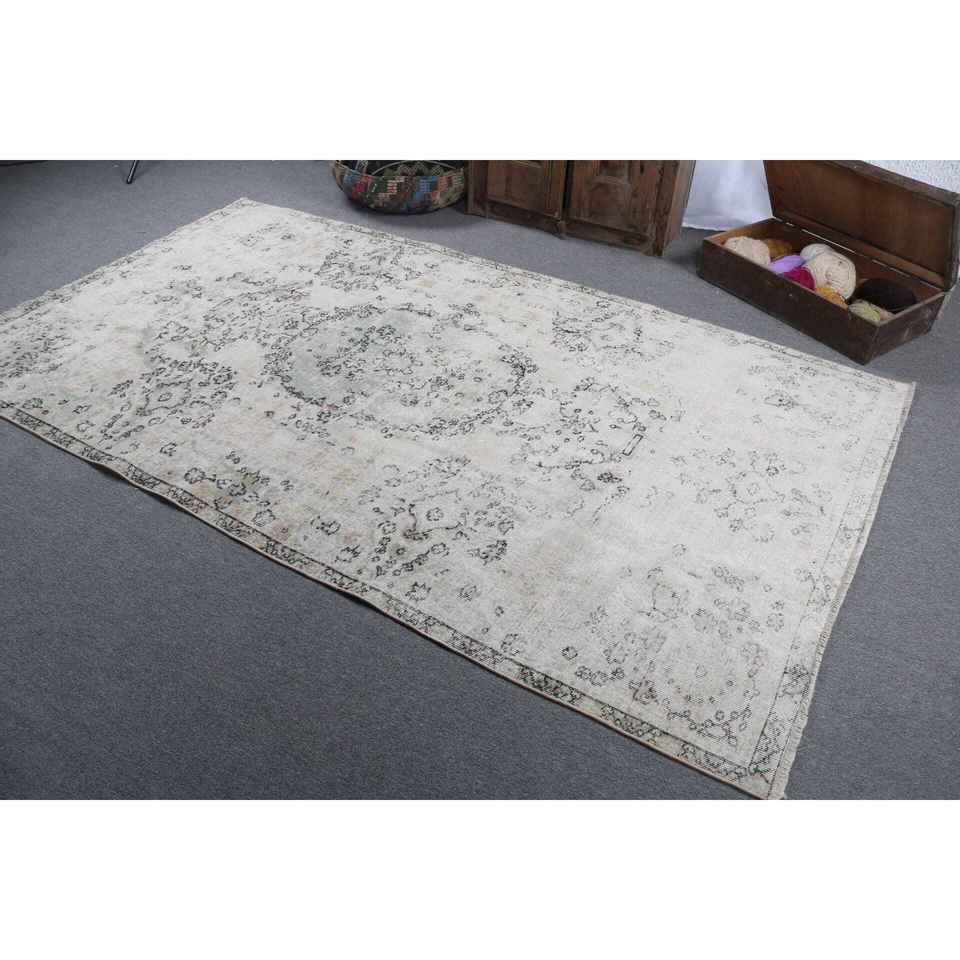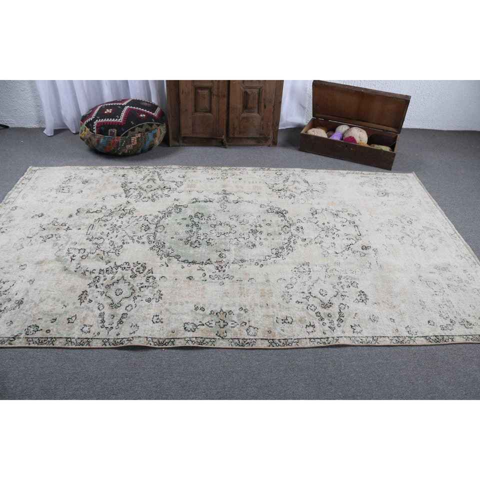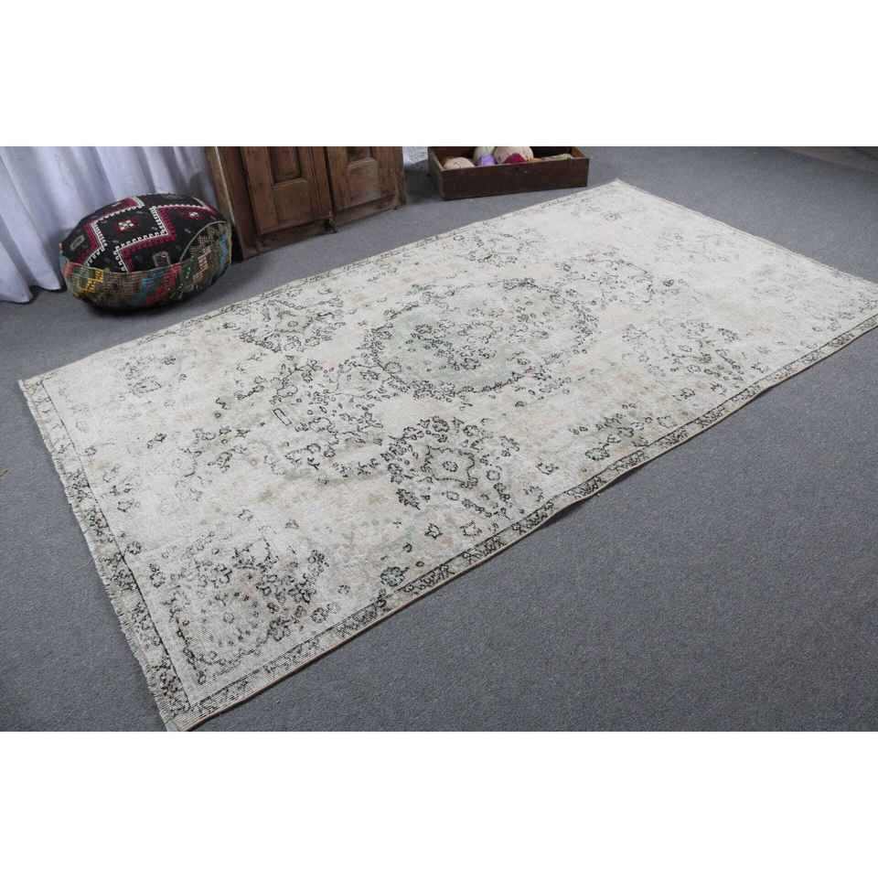 Alfombra Turca Vintage de 5.2x9.2 pies (159x279 cm), Alfombra Blanca Sólida