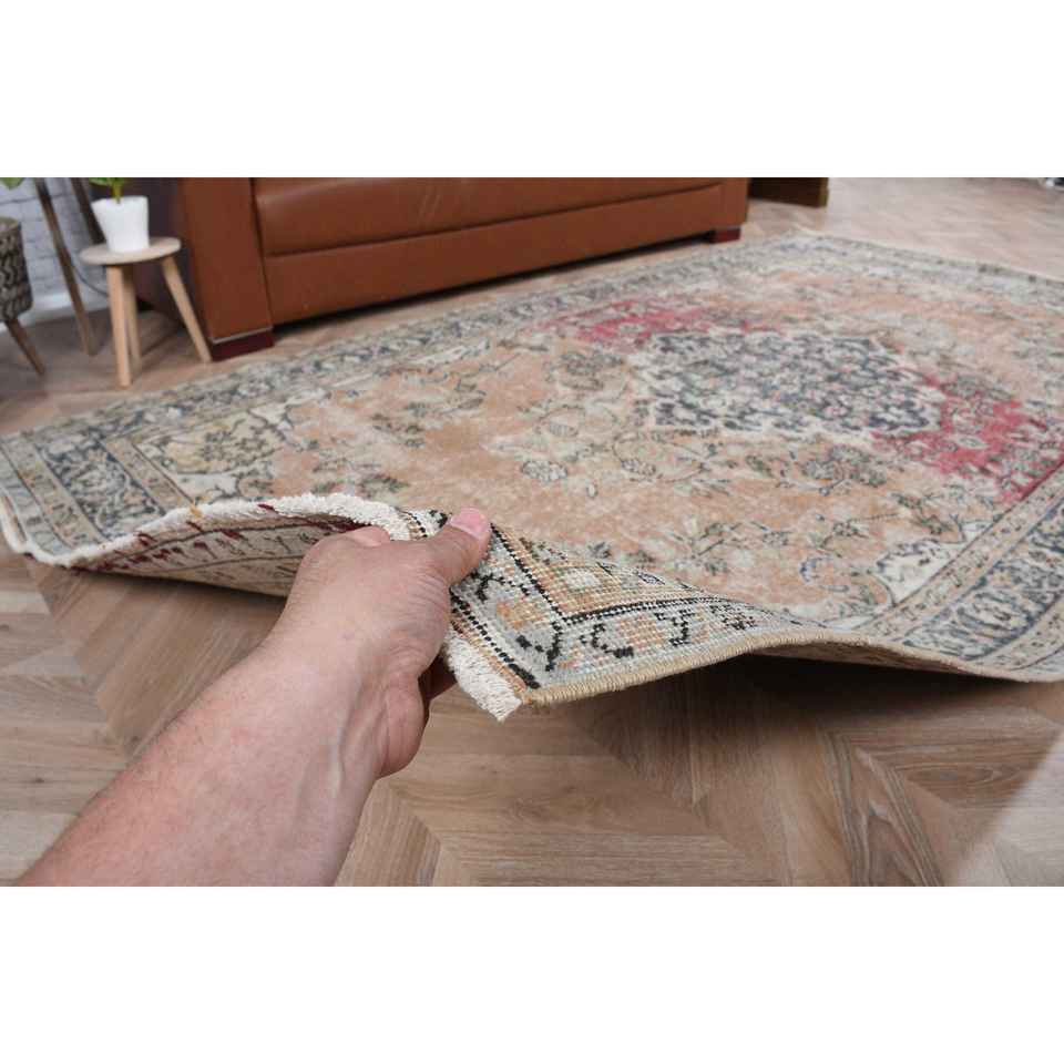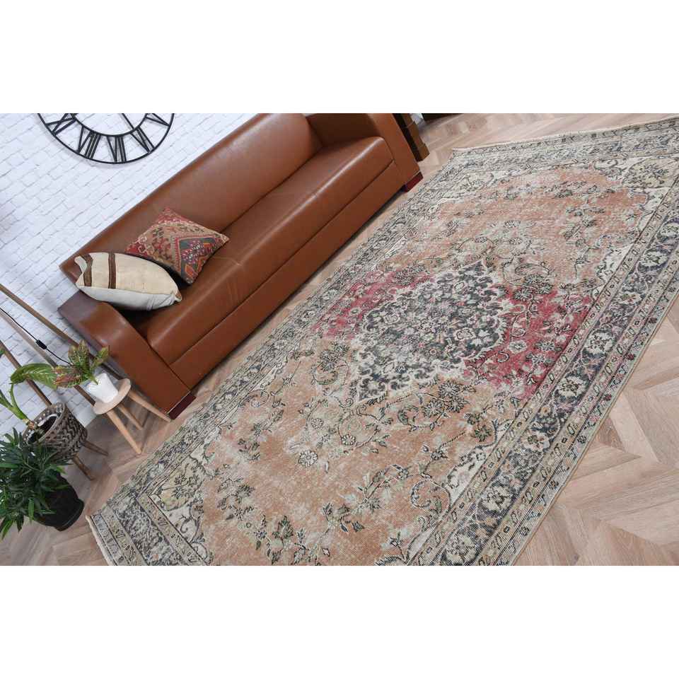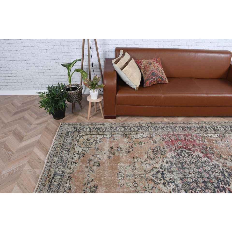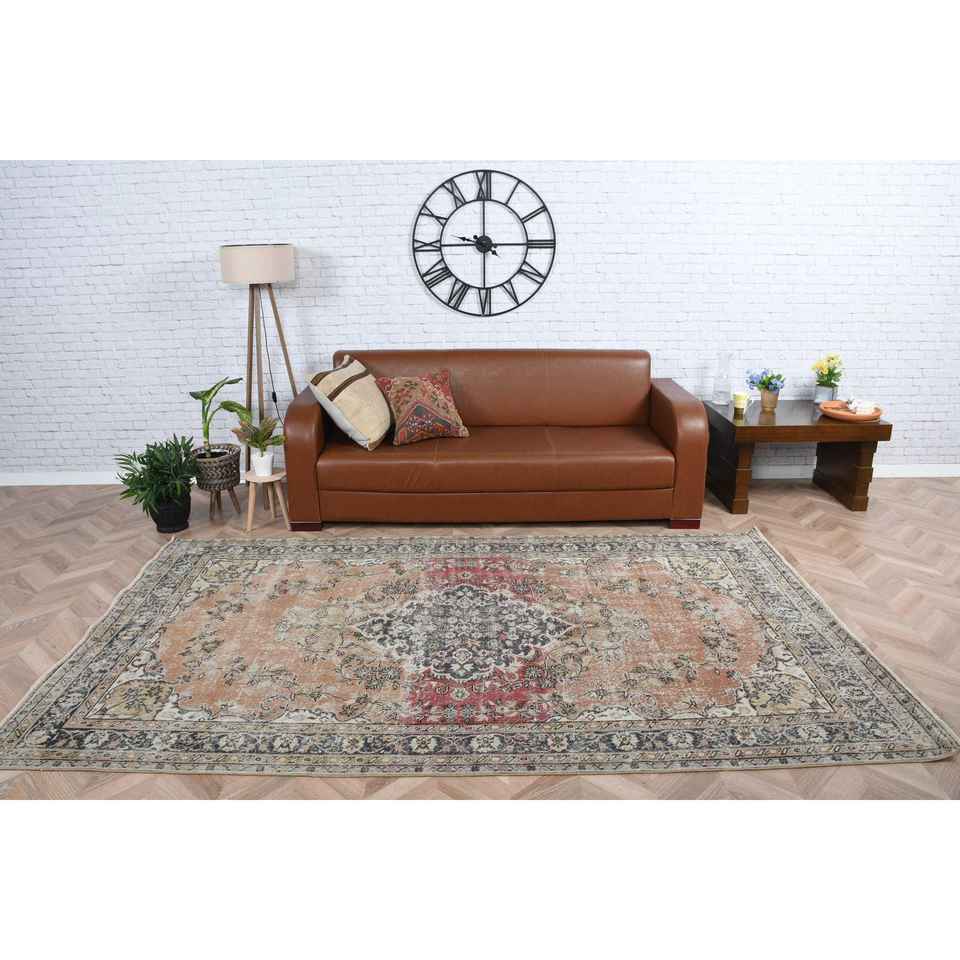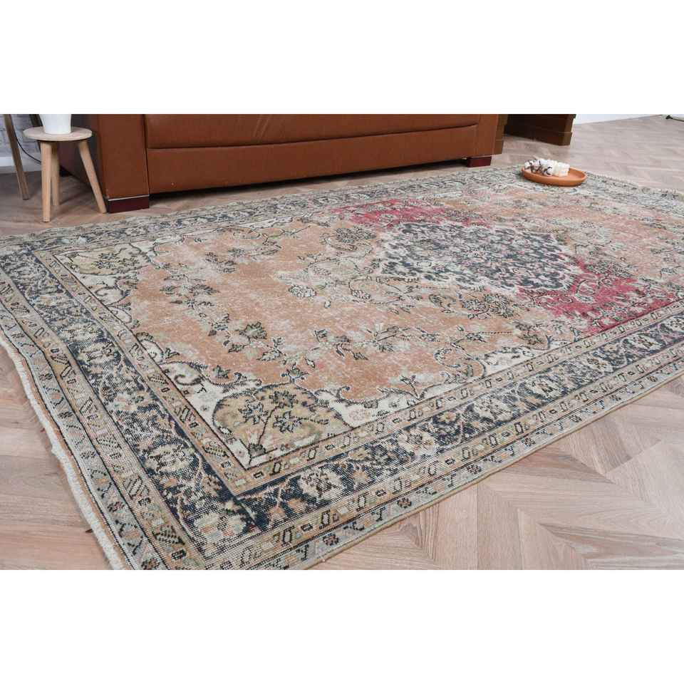 Alfombra Turca Vintage de 5.3x9.2 pies, Alfombra de Lana Azul Abstracta