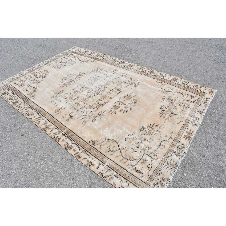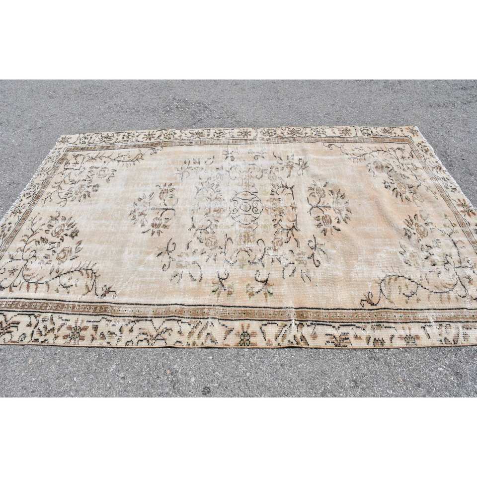 Alfombra turca Vintage de 5,4x8,3 pies, Beige, marrón, área grande, respaldo de látex de lana, Patchwork para adolescentes, alfombra Rectangular para pasillo y habitación