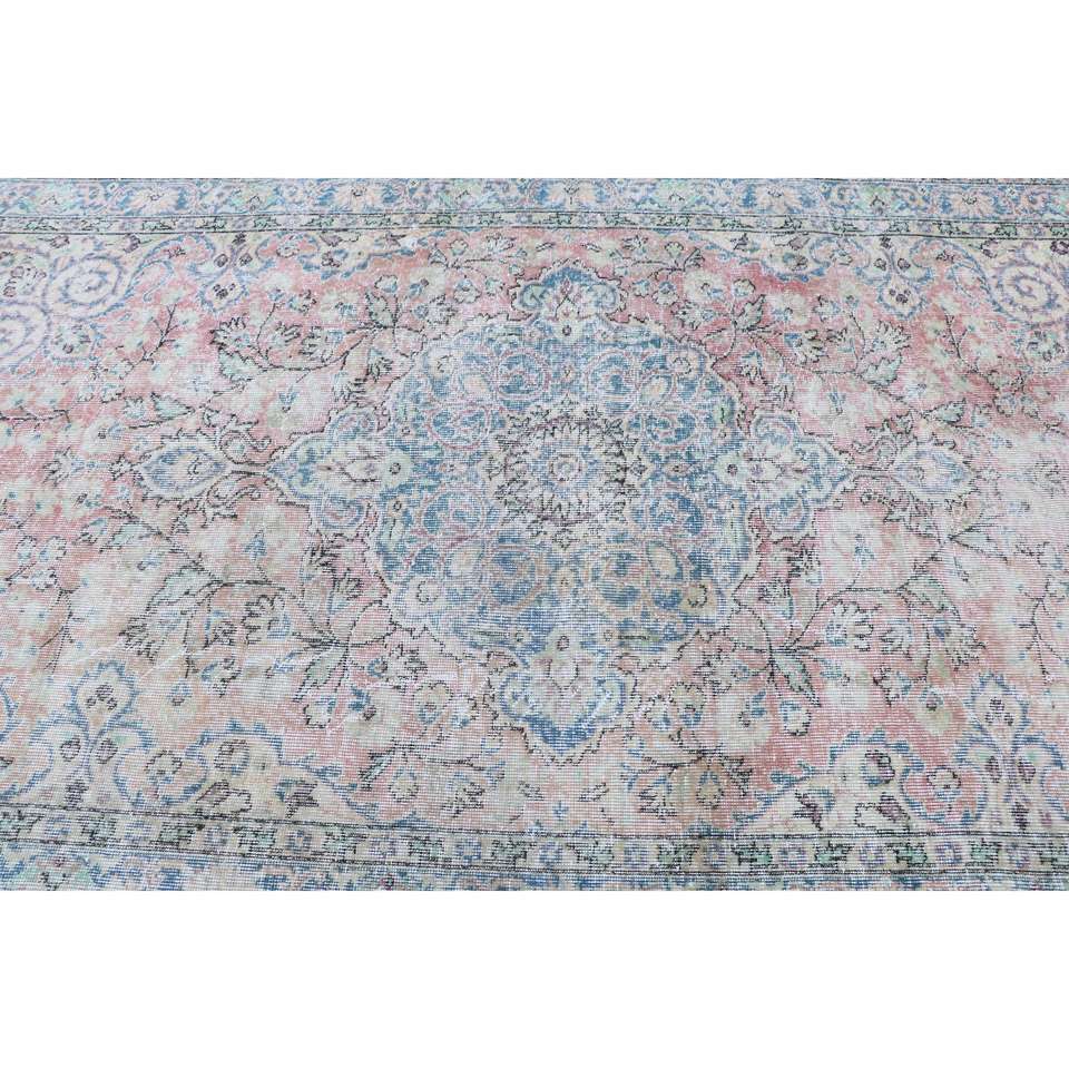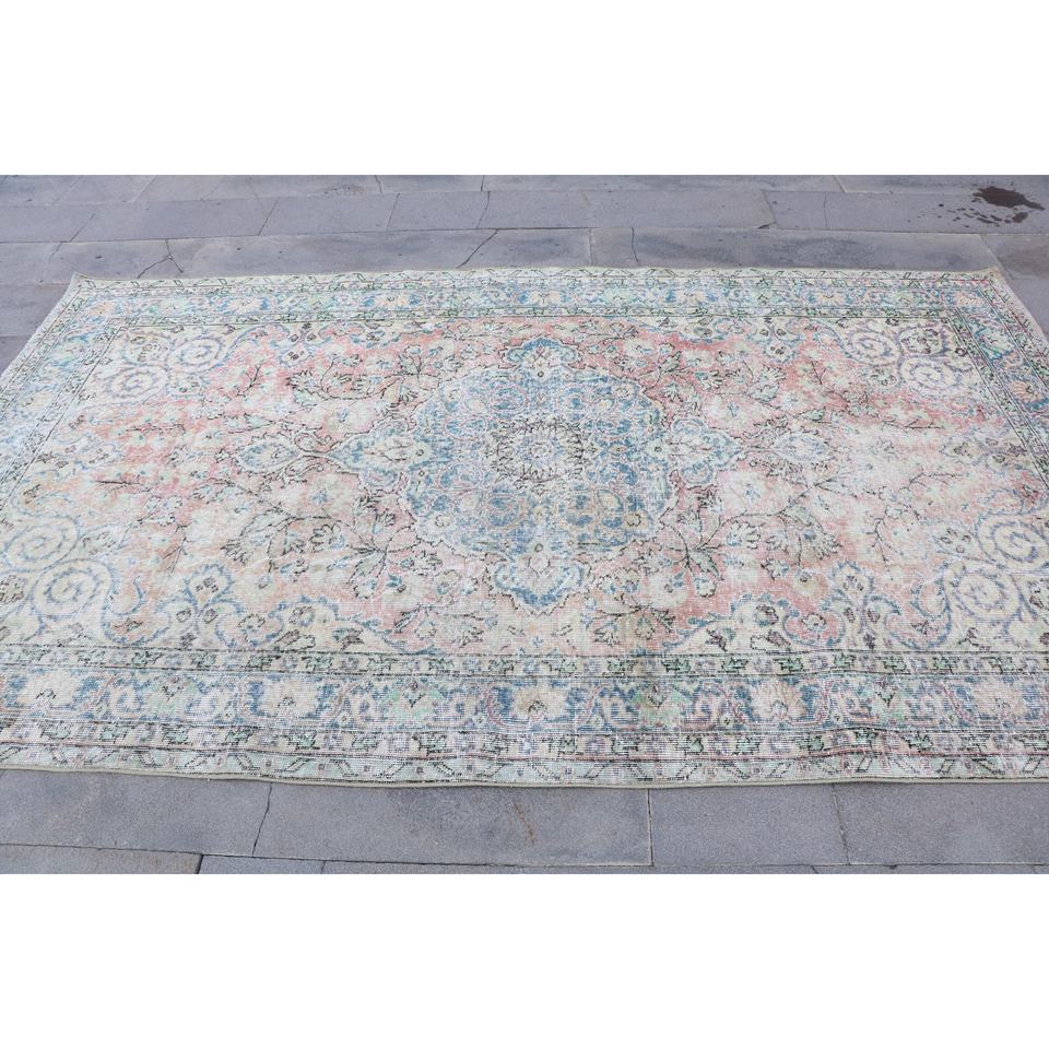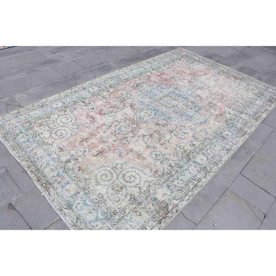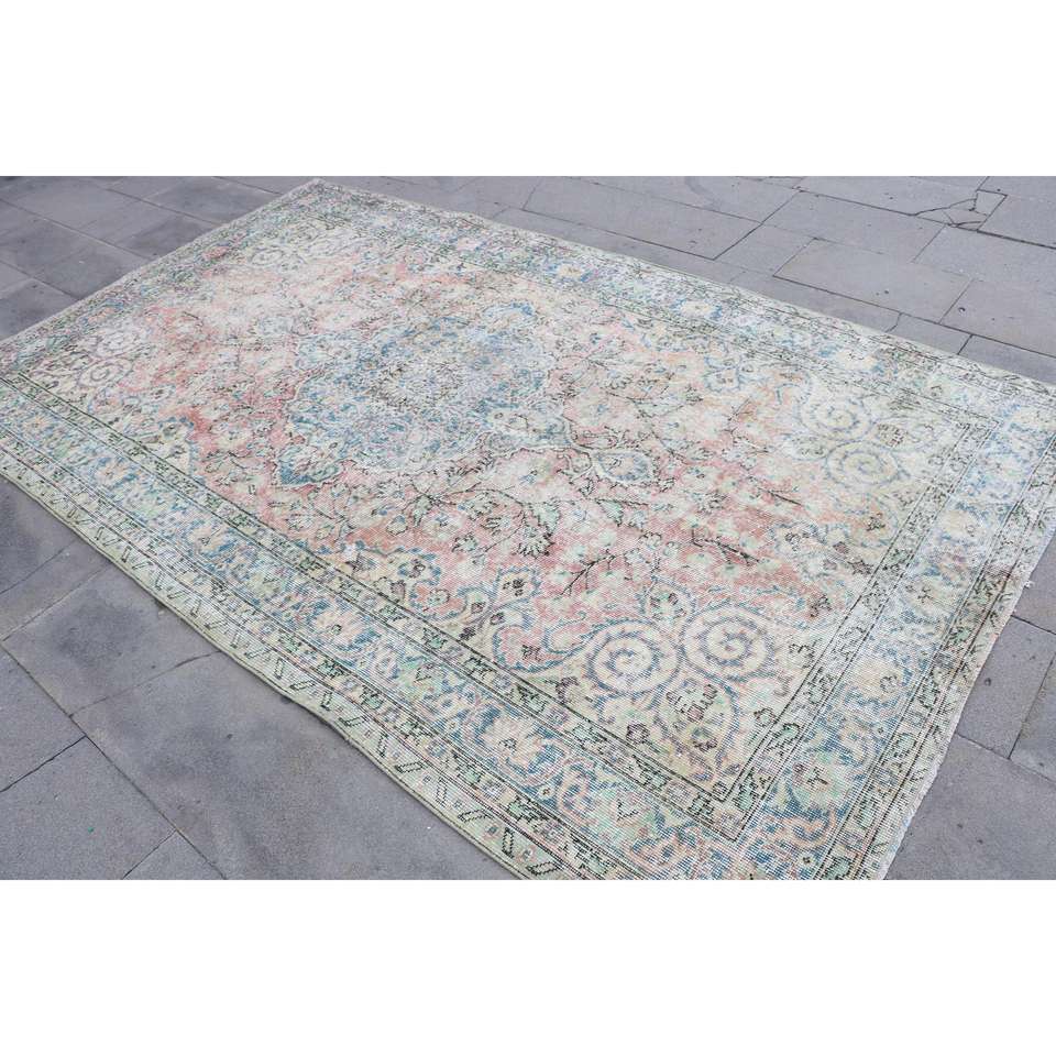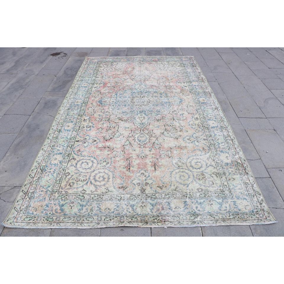 Alfombra Turca Vintage de 5.5x9.4 pies (169x287 cm), Alfombra Abstracta Azul y Rosa