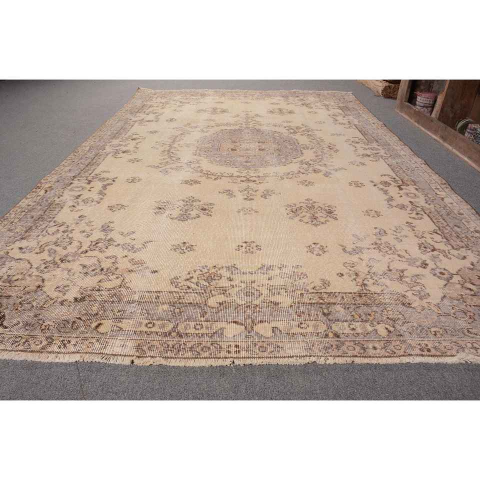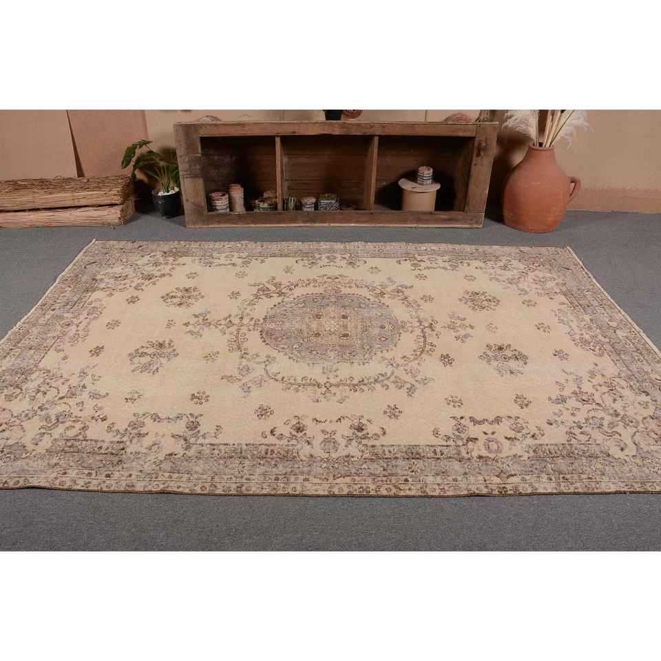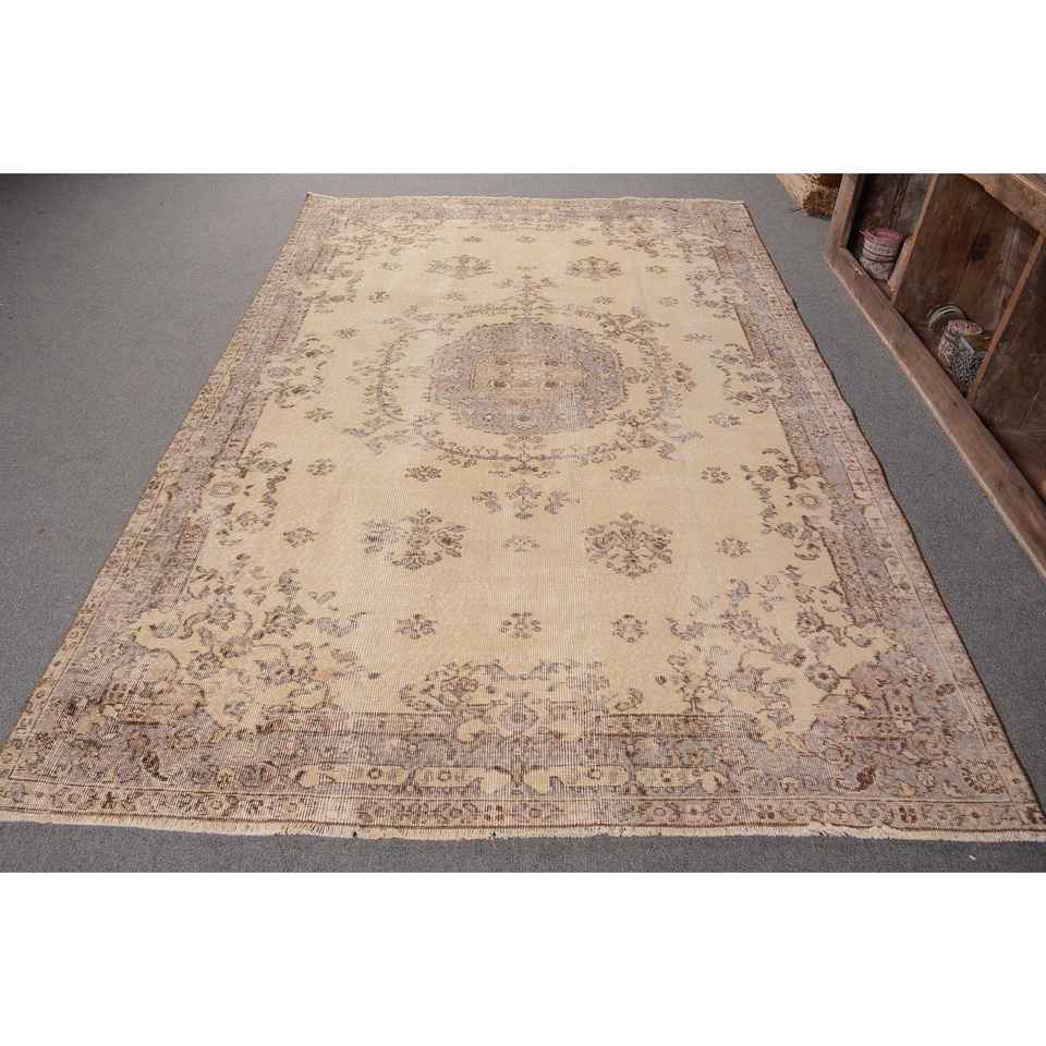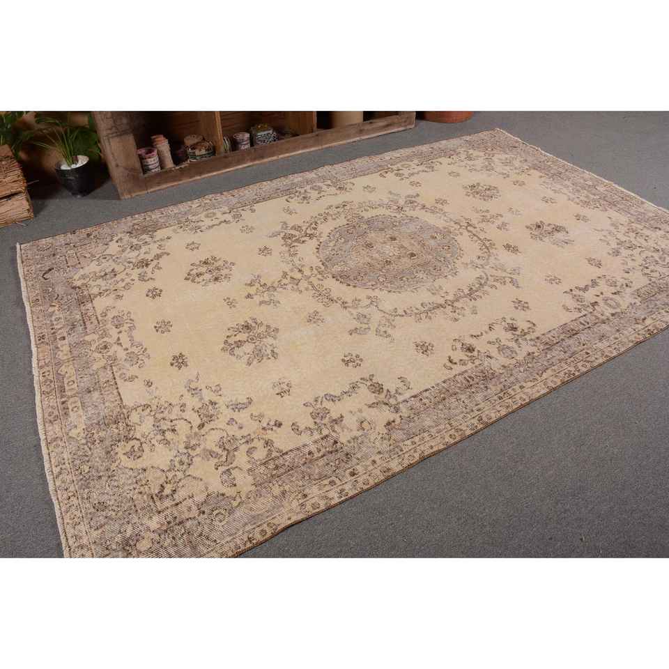Alfombra turca vintage de 5,8x9,1 pies Beige marrón tejido plano de lana con patrón de retazos para decoraciones de sala de estar o uso en el pasillo