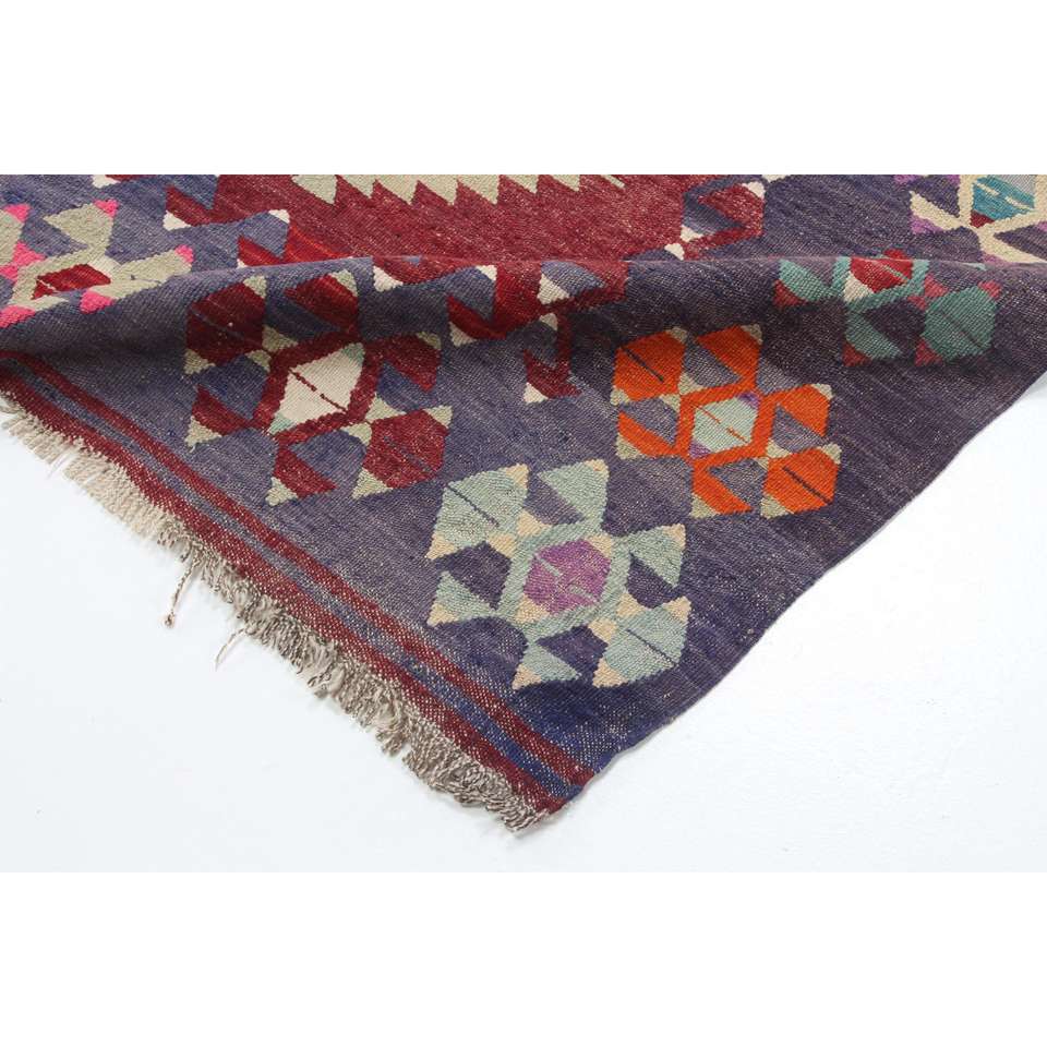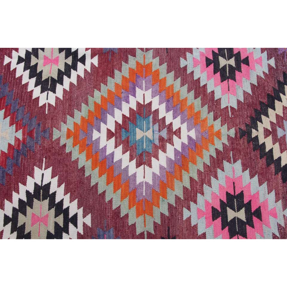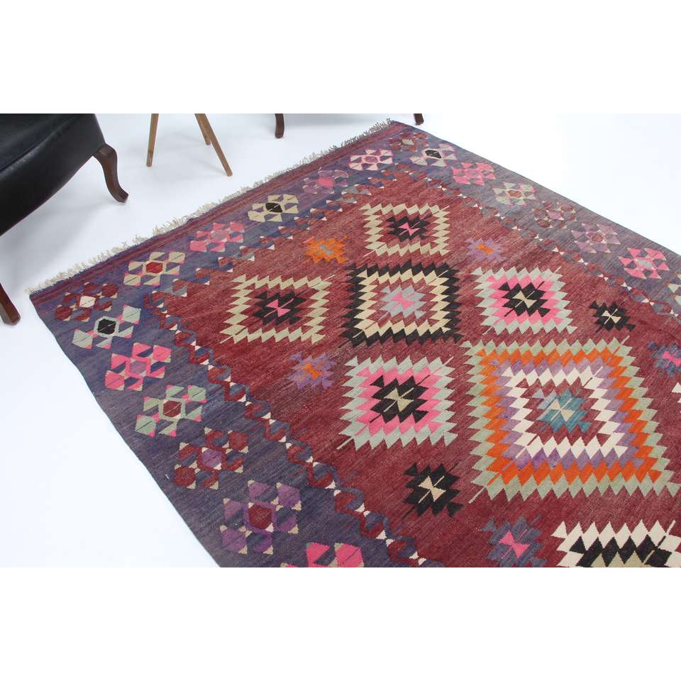 Alfombra Turca Vintage de 5.9x9.2 pies, Alfombra de Lana con Parches Rojos