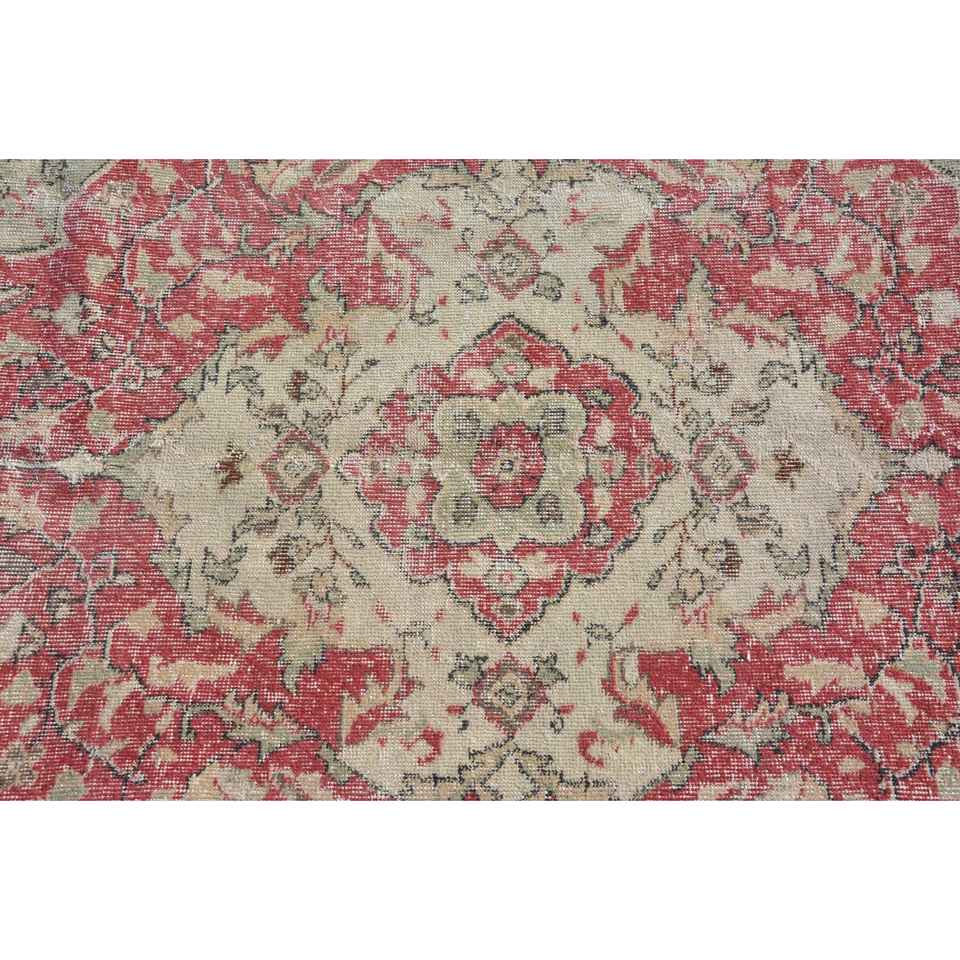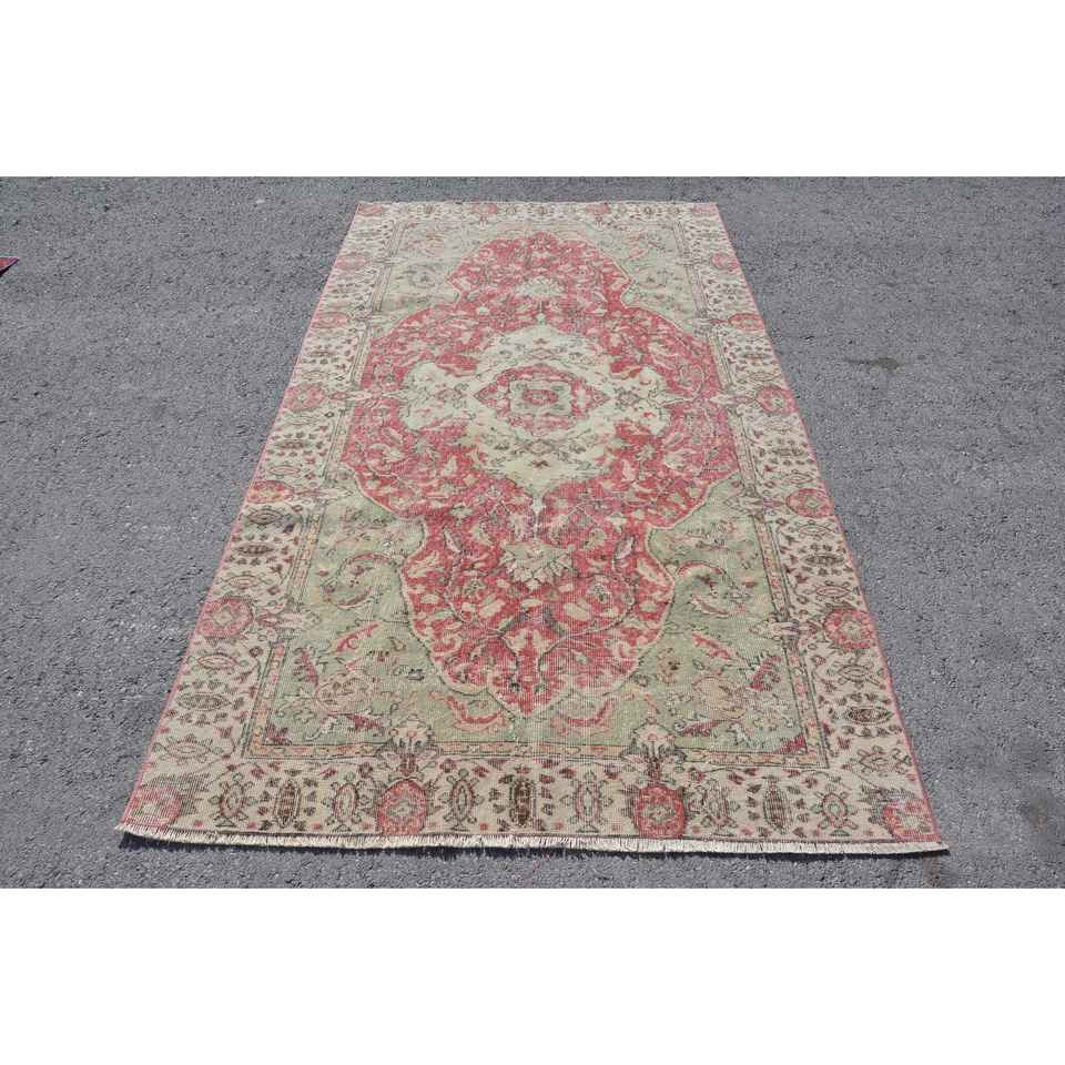 Alfombra Turca Vintage de Lana 5x9.1 pies, Ecológica, con Parches Rojos y Verdes, con Base de Látex