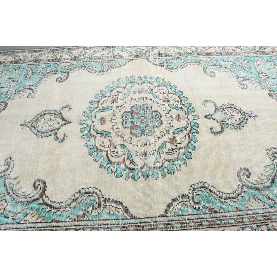 Alfombra Turca Vintage de Lana Azul, 6,4x10,1 pies (195x307 cm)