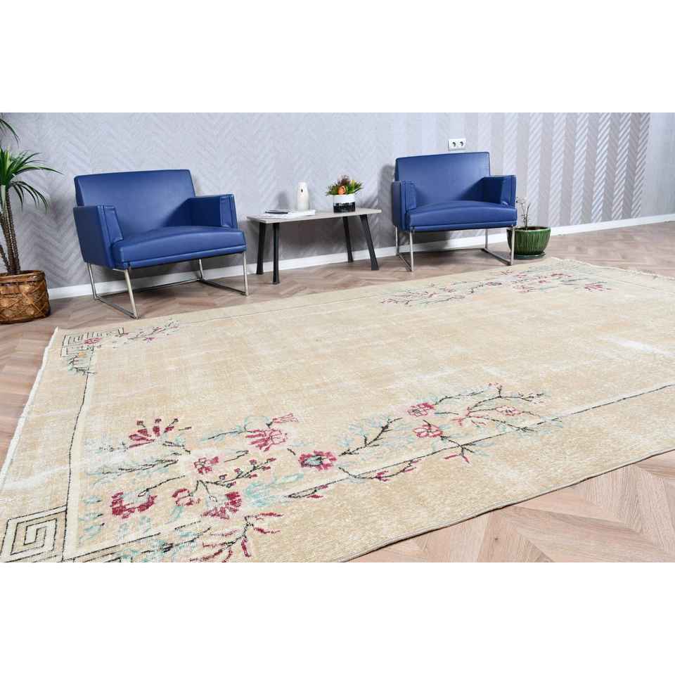 Alfombra Turca Vintage de 6.7x10 pies (204x306 cm), Alfombra de Lana Beige