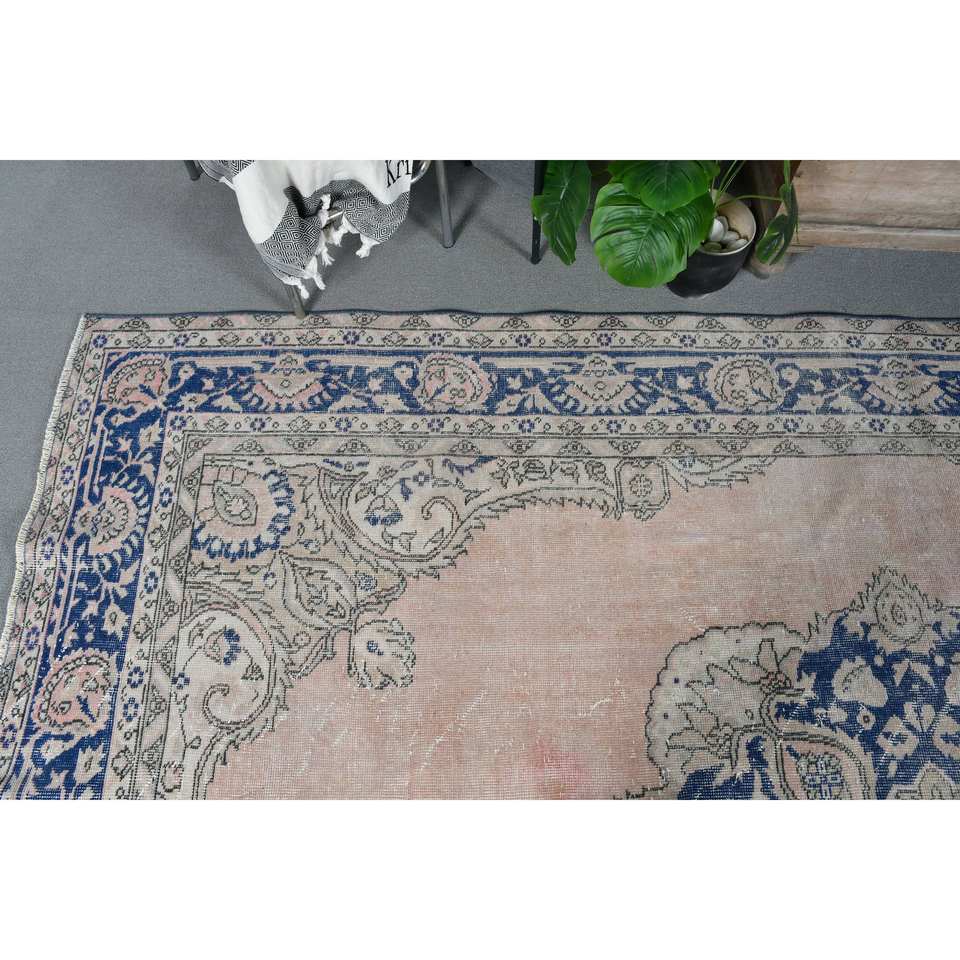 Alfombra turca vintage de 6,9x10,2 pies, diseño de retazos rosa y azul, tejido plano de lana con respaldo de látex para decoración de sala de estar