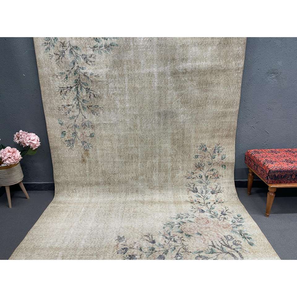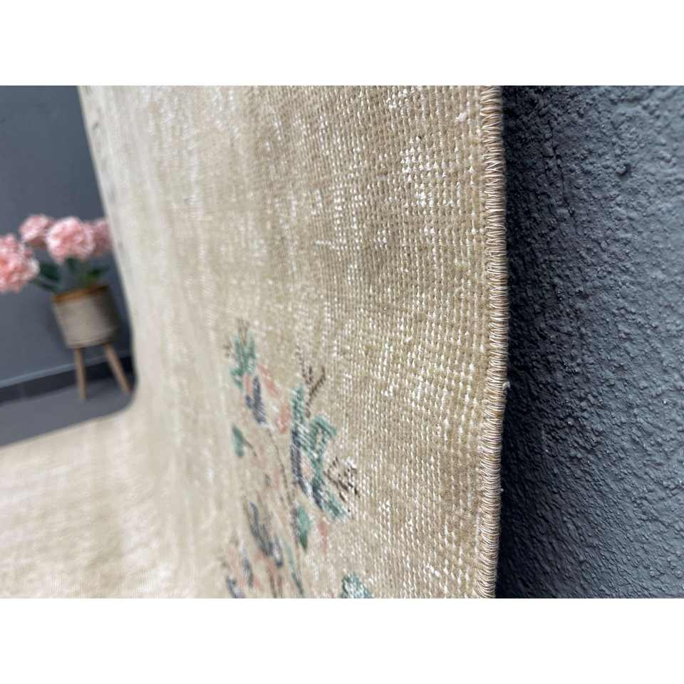 Alfombra Turca Vintage, Alfombra de 6x9.4 pies, Alfombra de Lana Sólida Gris Azul