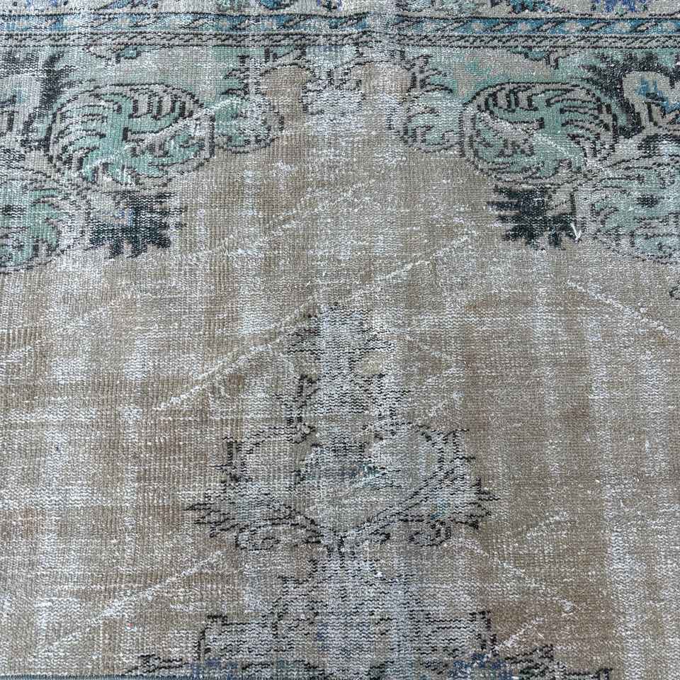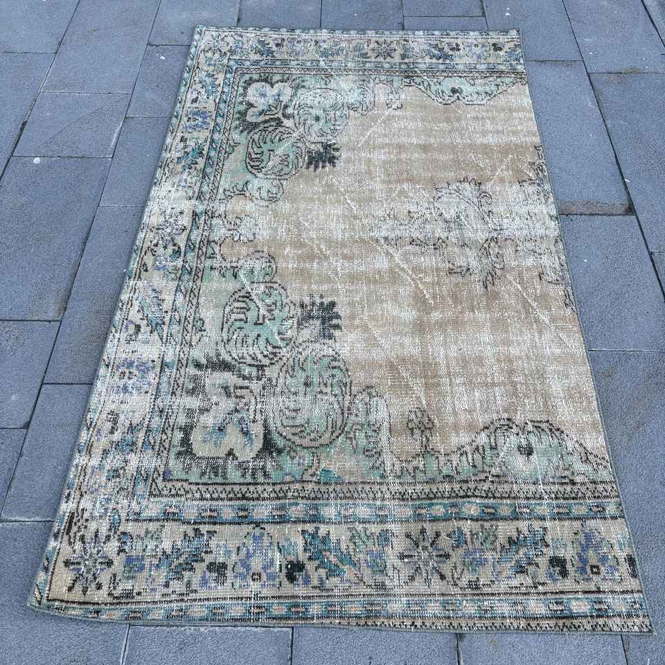 Alfombra Turca Vintage, Alfombra de Lana con Diseño Floral Azul, Medidas 3.8x6.6 pies (115x202 cm)