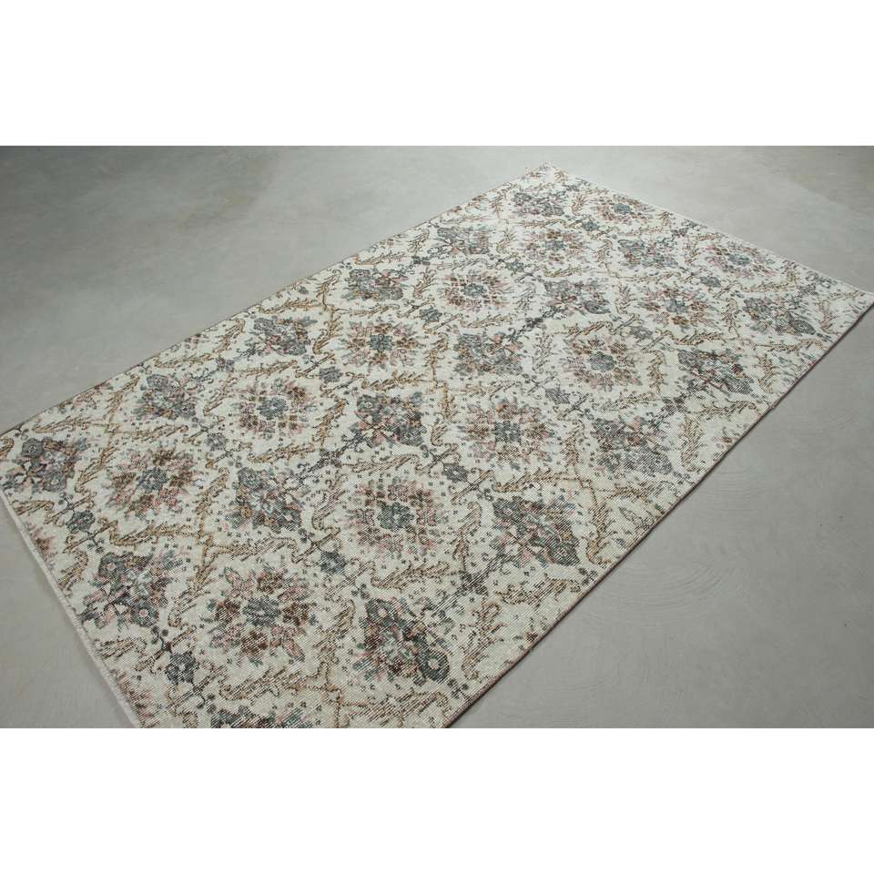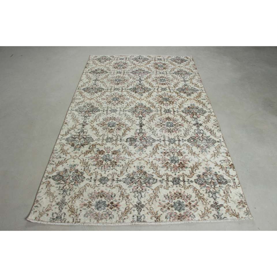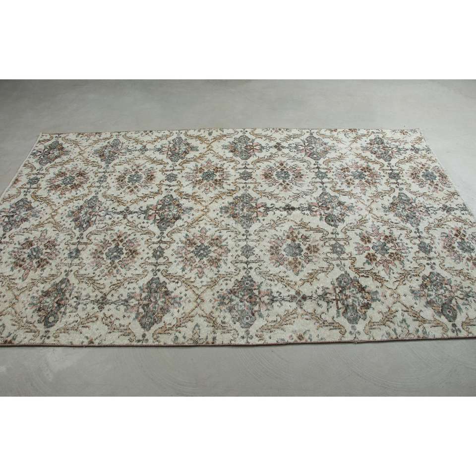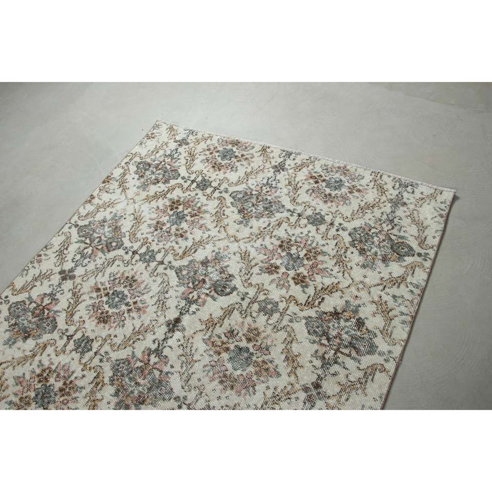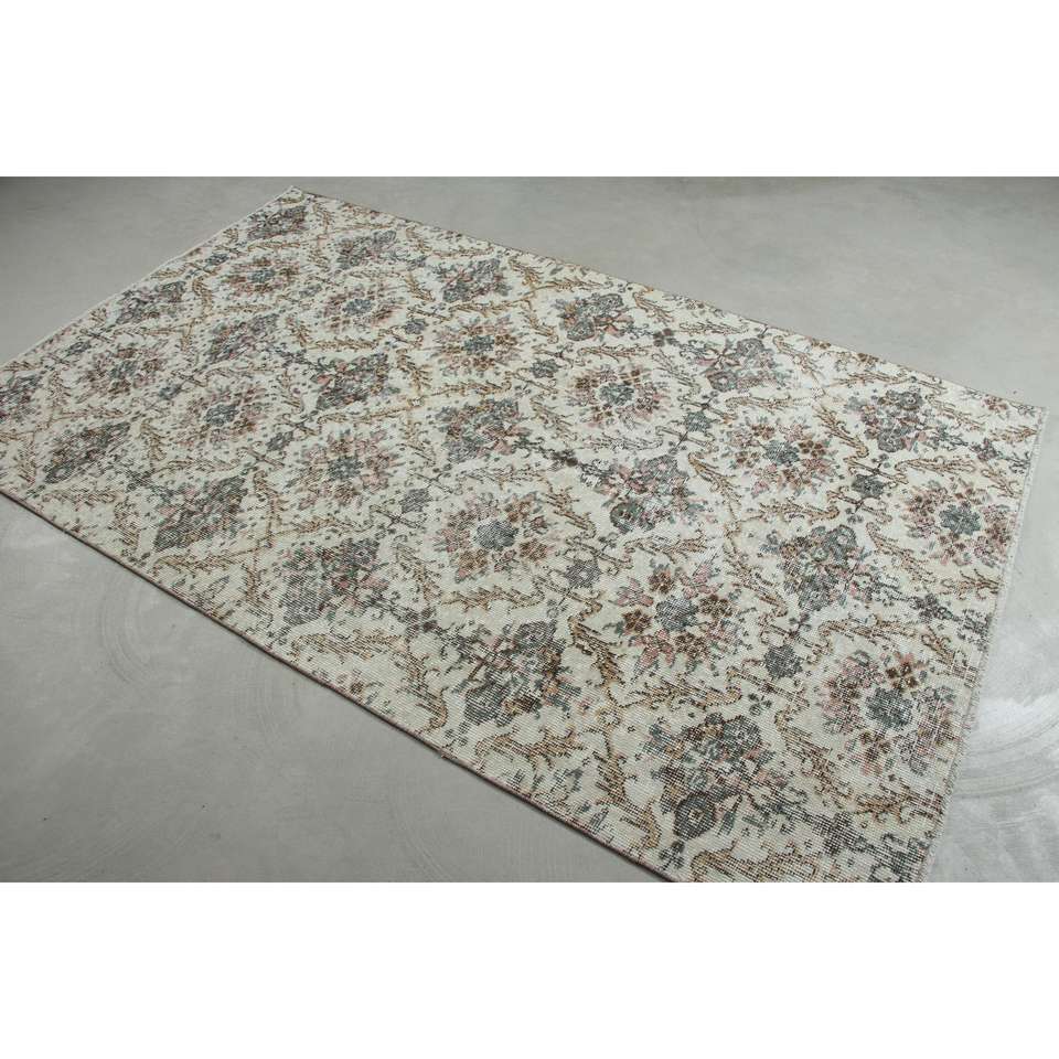 Alfombra Turca Vintage, Alfombra de Lana a Rayas Blancas de 4.6x7.7 pies (139x234 cm)