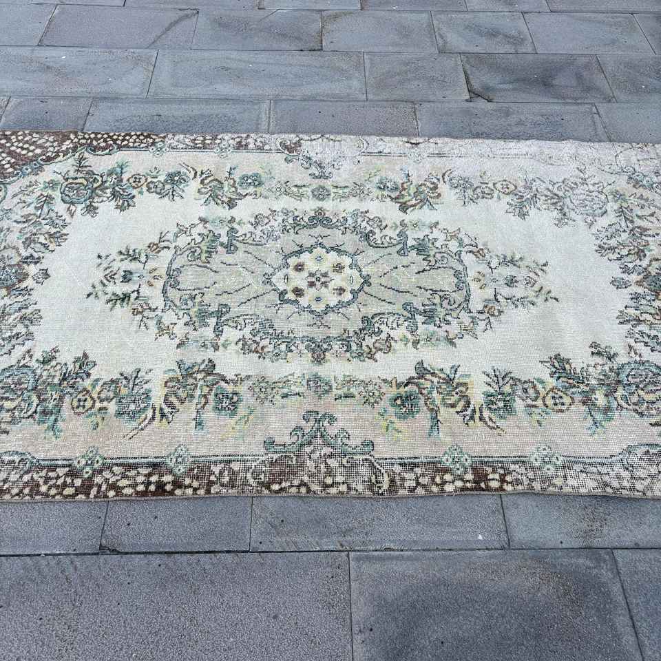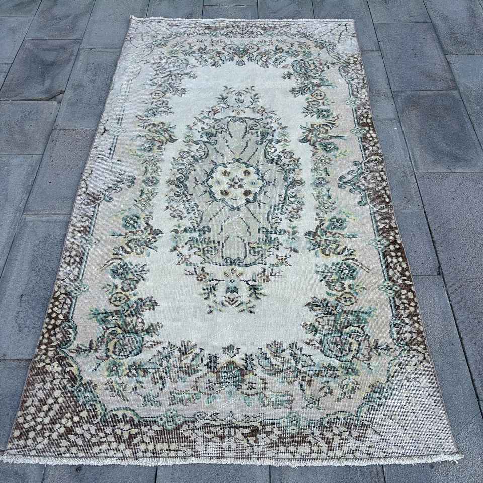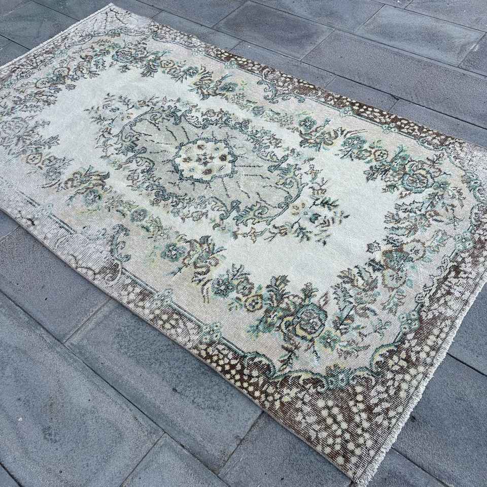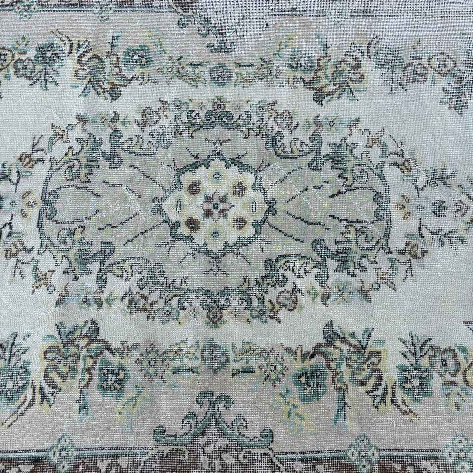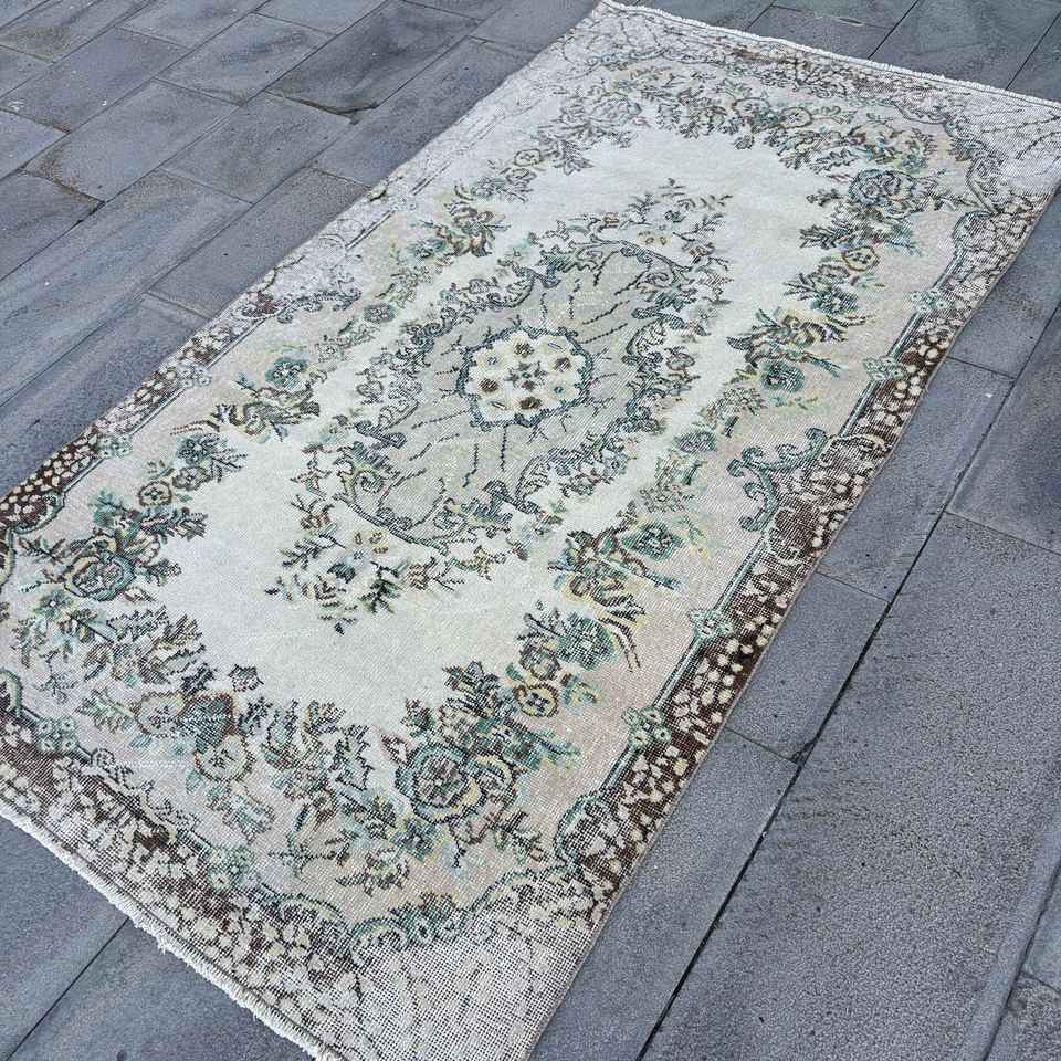 Alfombra Turca Vintage, Alfombra de Lana Ikat Azul de 4x7.1 pies (122x216 cm)