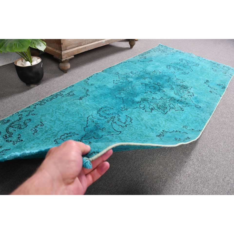 Alfombra turca vintage clásica azul 2.9x6.7ft hecho a mano felpa pila lana látex respaldo Patchwork pasillo rectángulo para adolescentes