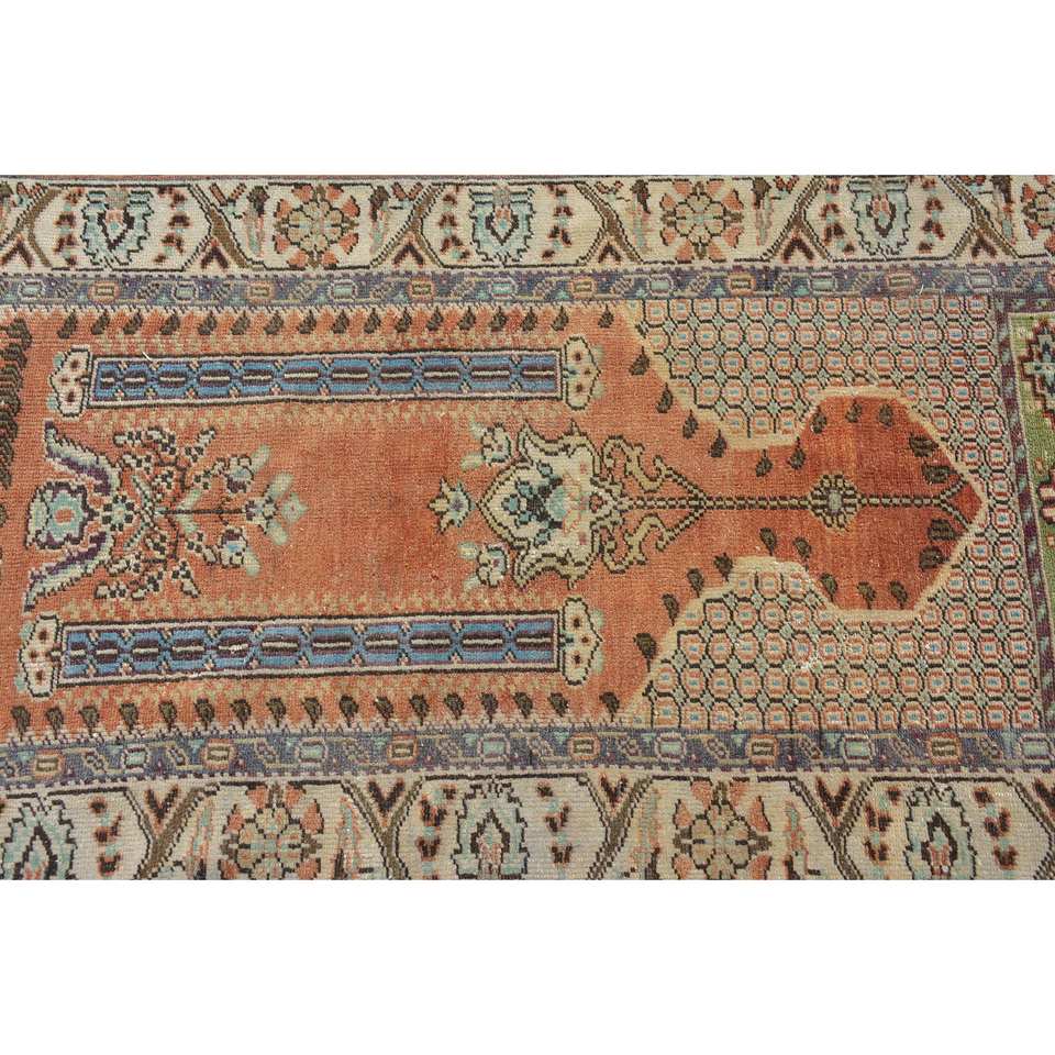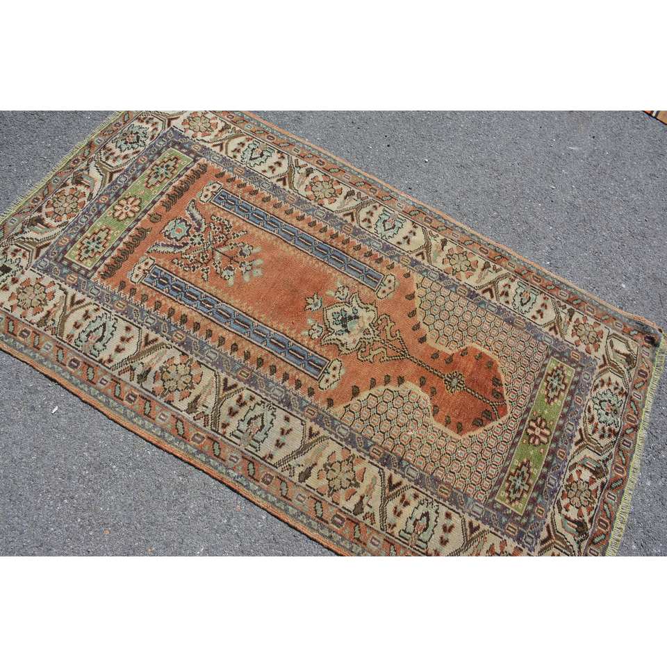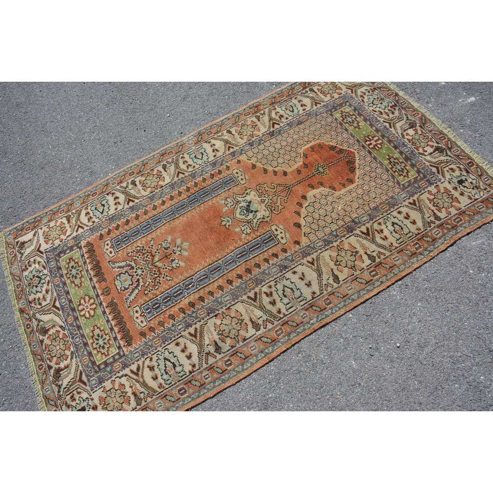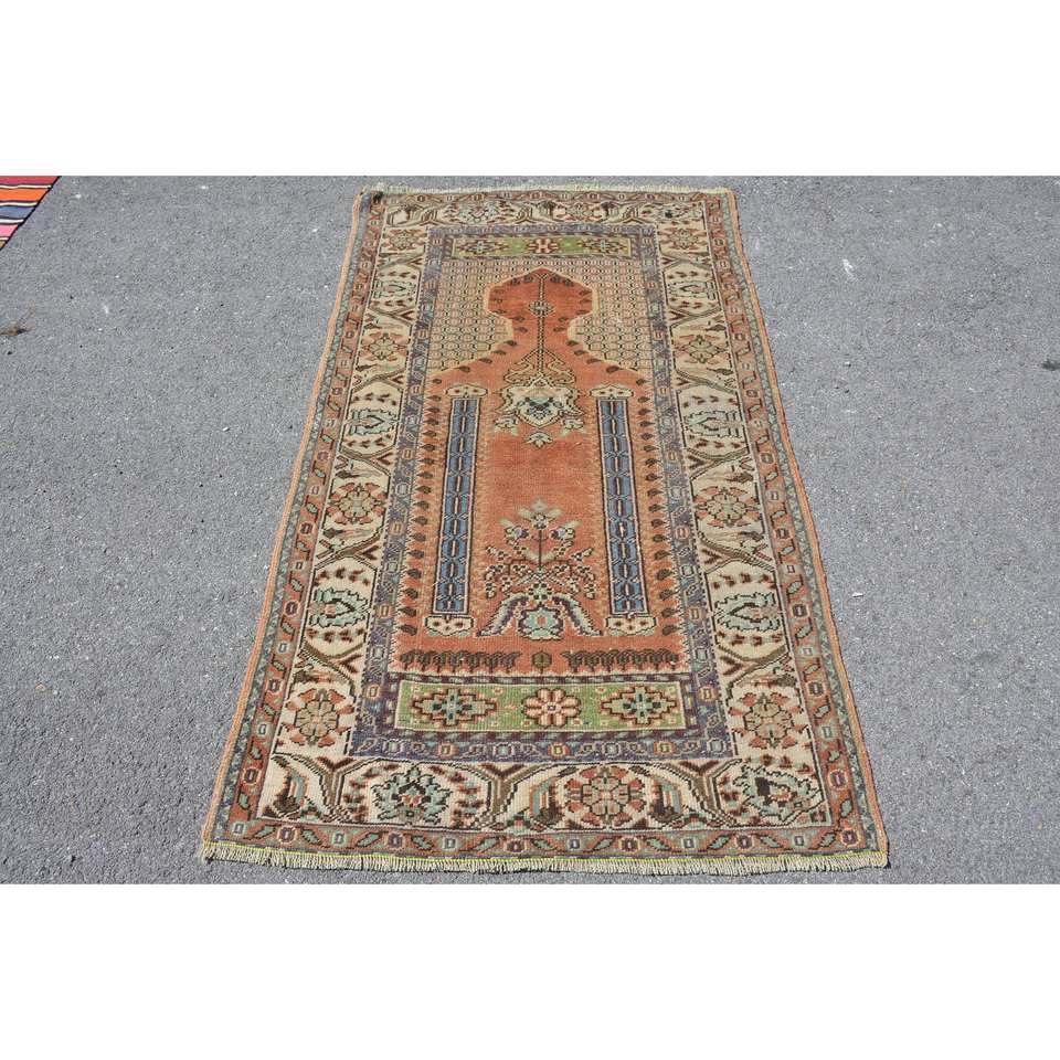 Alfombra turca vintage clásica naranja azul diseño de retazos 3,4x5,7 pies para sala de estar dormitorio lana poliéster látex rectángulo