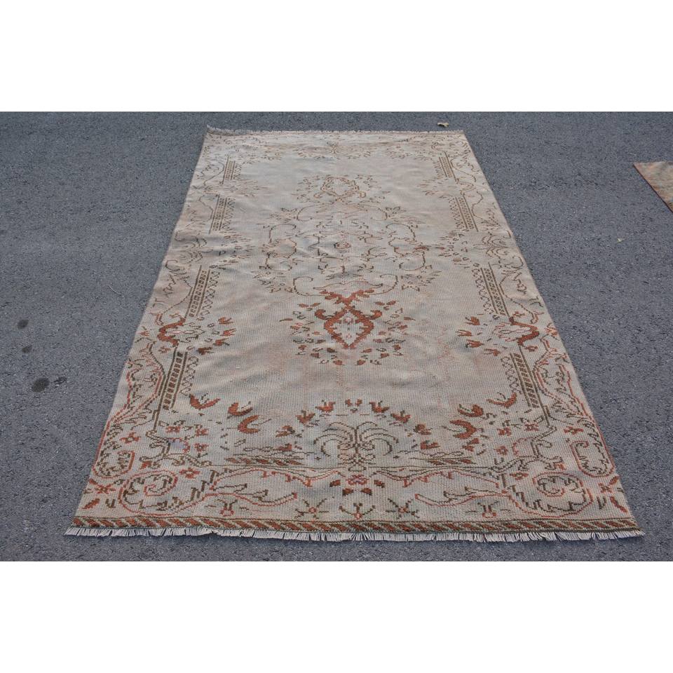 Alfombra turca vintage grande de 5,2x8,5 pies, forro de látex de lana marrón beige, diseño de retazos para adolescentes, alfombra rectangular para habitación de pasillo