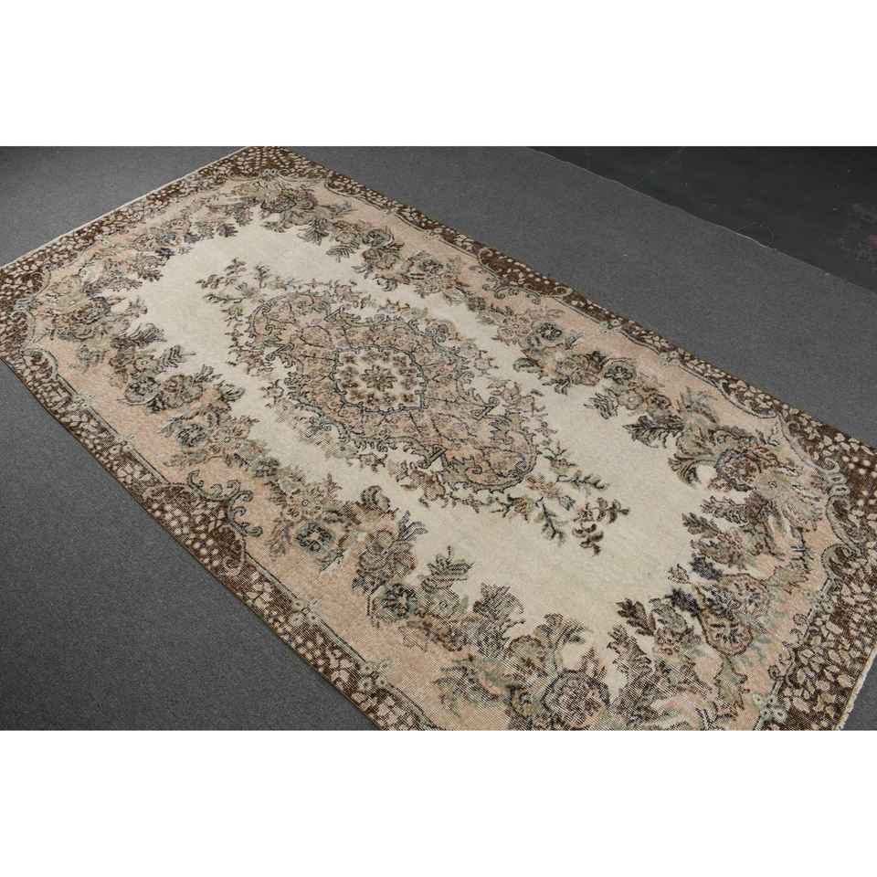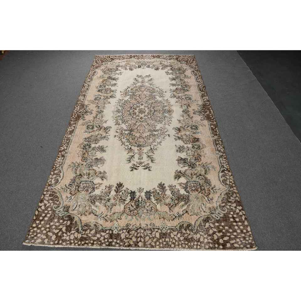 Alfombra Turca Vintage, Grande, 5.3x10.2 pies (161x312 cm), Alfombra de Lana Marrón Sólida