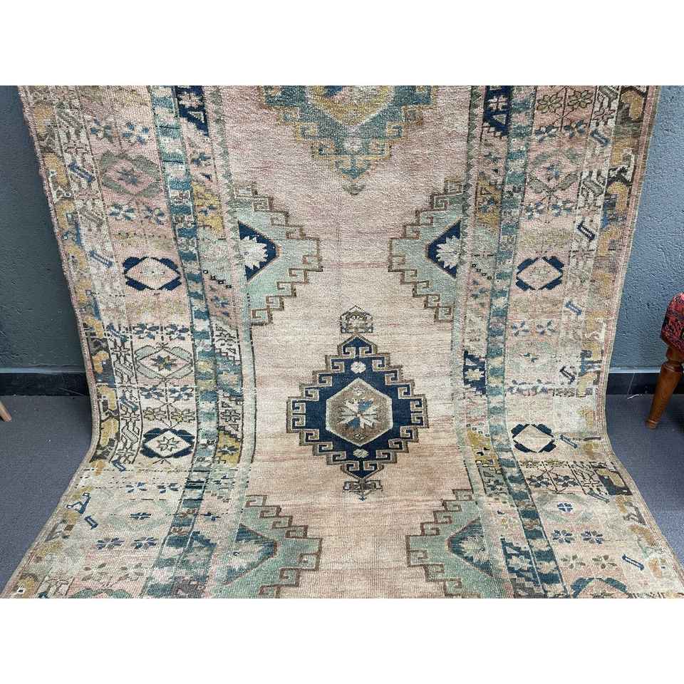 Alfombra Turca Vintage, Alfombra Grande de 5x12 pies (151x366 cm), Alfombra Oriental de Lana Azul