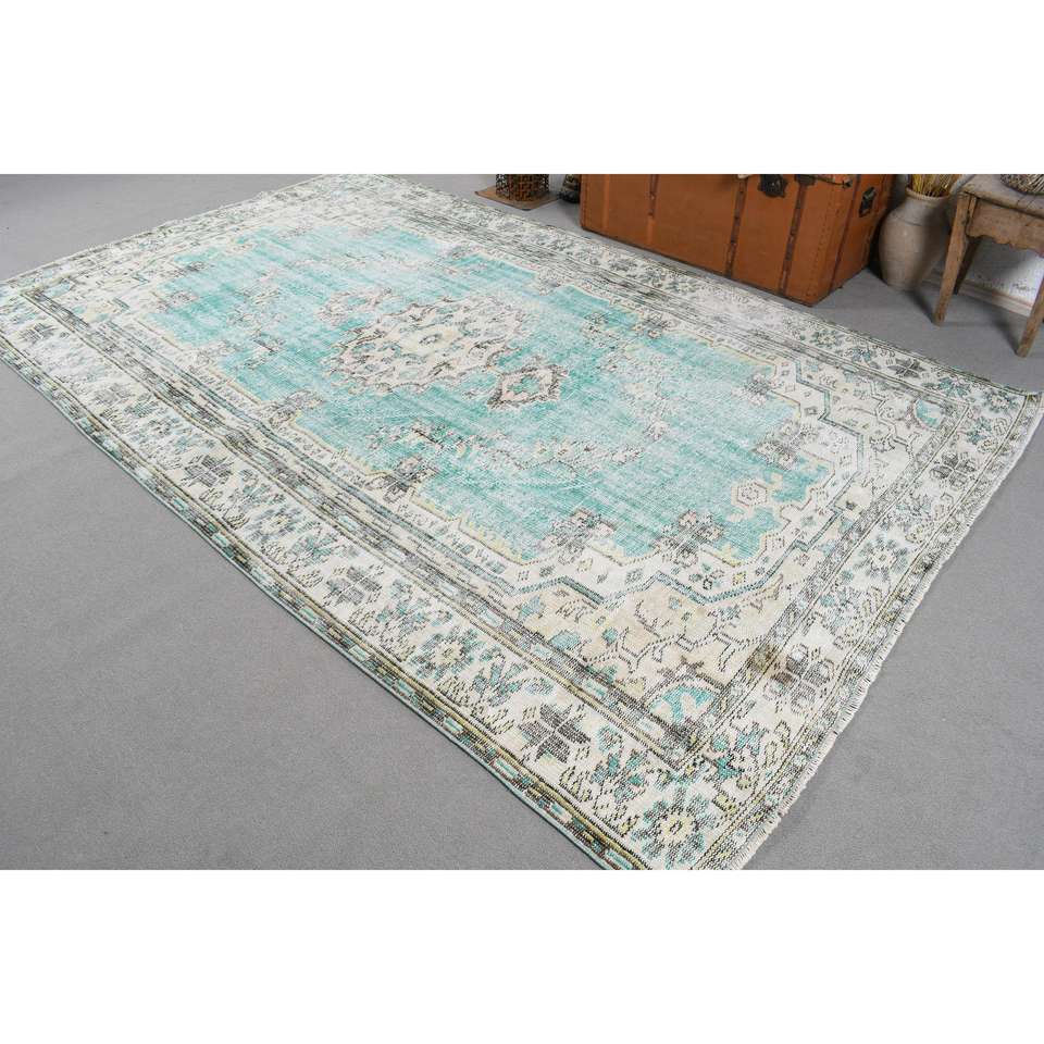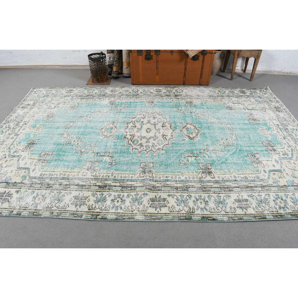 Alfombra Turca Vintage, Grande, 6.2x9.6 pies (190x294 cm), Alfombra de Lana con Diseño Floral Azul