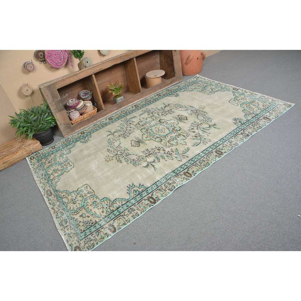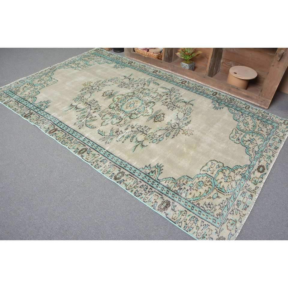 Alfombra turca Vintage área grande 4,9 X 8.4ft clásico verde azul diseño de retazos lana látex rectángulo abstracto pasillo habitación alfombra
