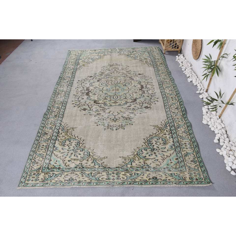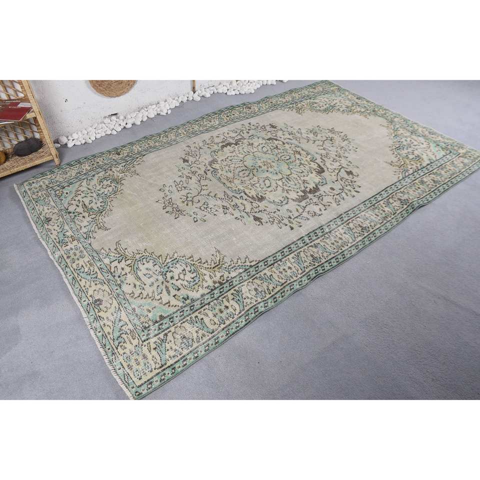Alfombra turca Vintage área grande 5,4 X 8.6ft forro de látex de lana verde Patchwork para adolescentes estilo Rectangular-modelo 'habitación'