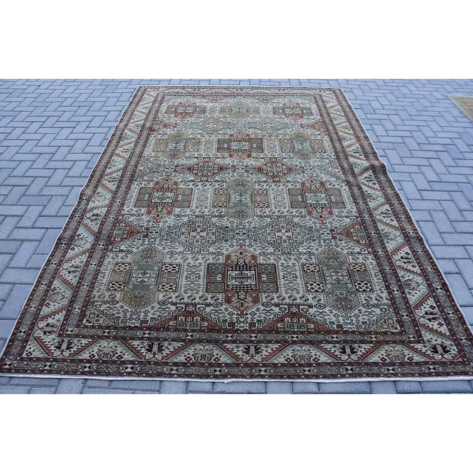 Alfombra turca Vintage de área grande de 6,7x9,7 pies, Material de lana marrón Beige clásico, retales rectangulares de látex para pasillo de dormitorio
