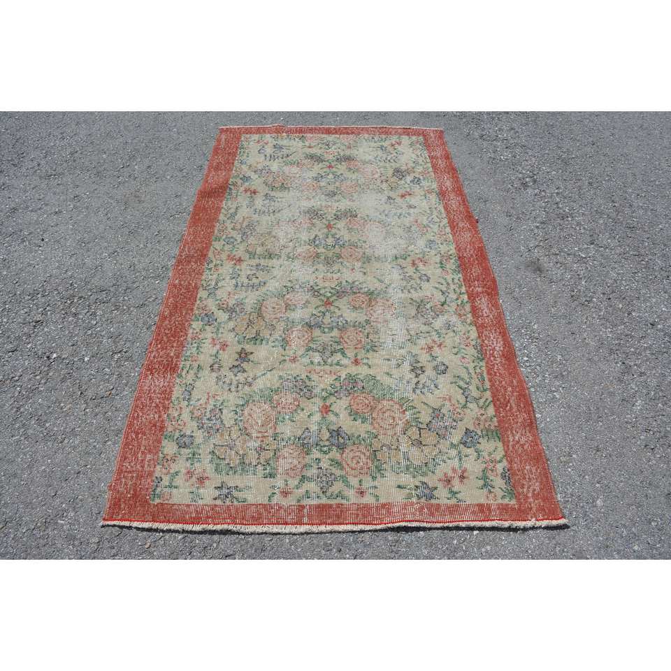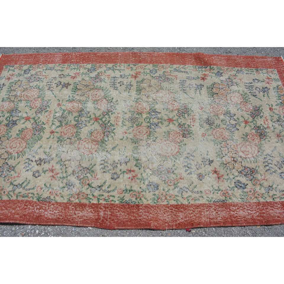 Alfombra turca Vintage Rectángulo grande 3,6X6,6 pies Clásico Rojo Beige Patrón de retazos abstracto Látex de lana para uso en el pasillo de adolescentes