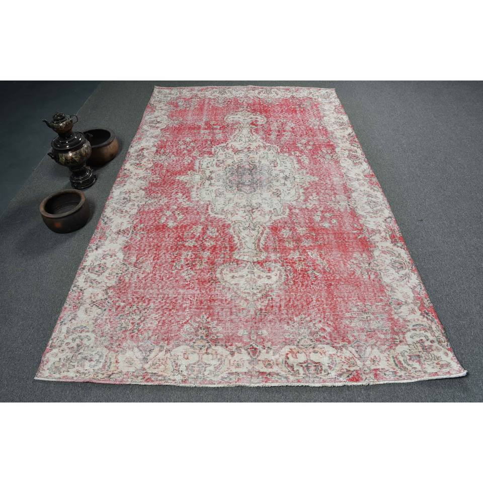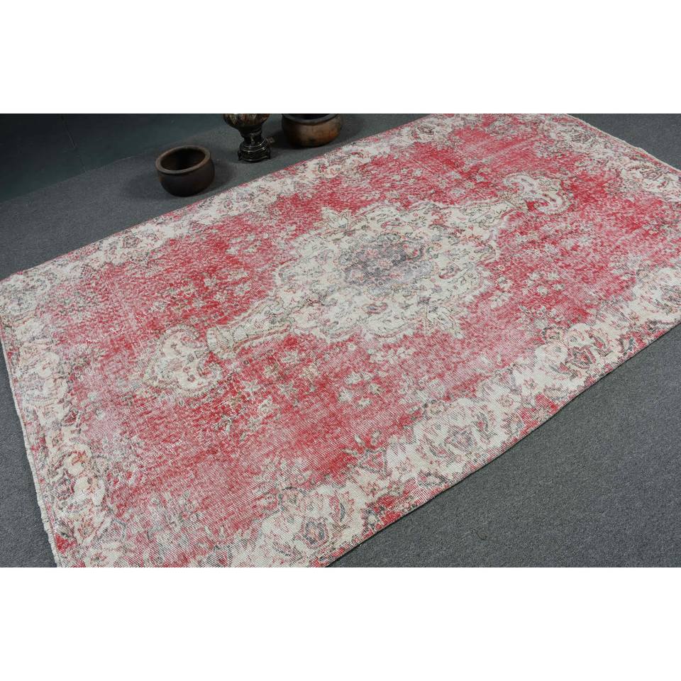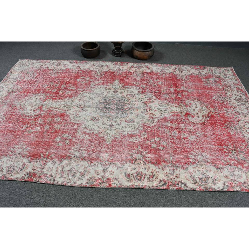 Alfombra turca Vintage, diseño de retazos en rojo y blanco, área grande, Material de lana de 5,2x8,8 pies con respaldo de látex para pasillo y dormitorio