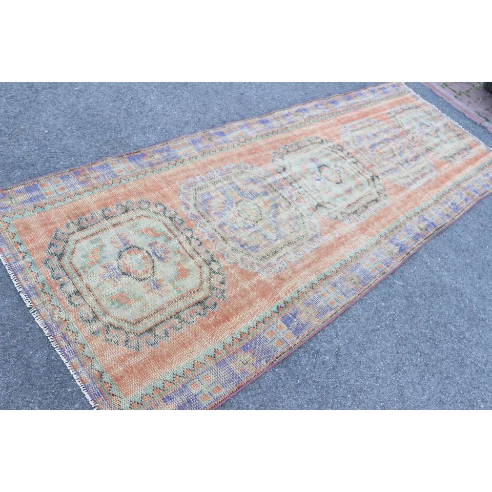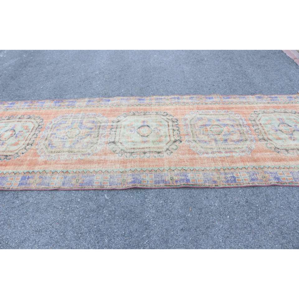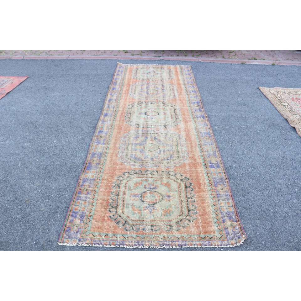 Alfombra Turca Vintage, Alfombra de Pasillo de 4x10.8 pies (122x328 cm), Alfombra de Lana con Diseño Floral Naranja