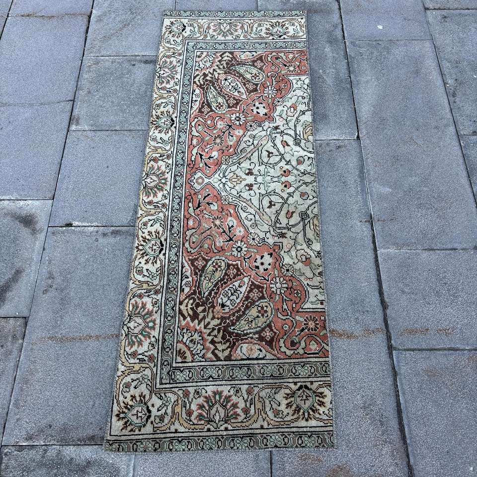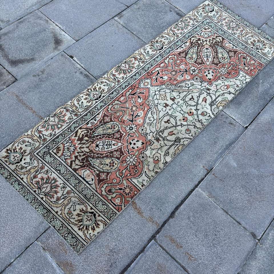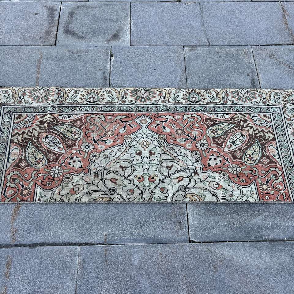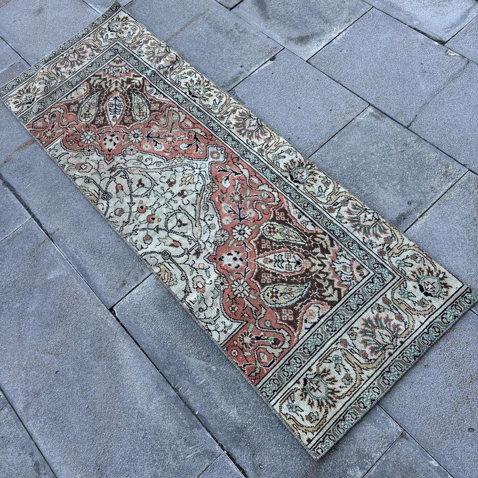 Alfombra Turca Vintage Pequeña de 1.7x4.8 pies (51x146 cm) Alfombra de Lana Roja con Parches y Respaldo de Látex Ecológico