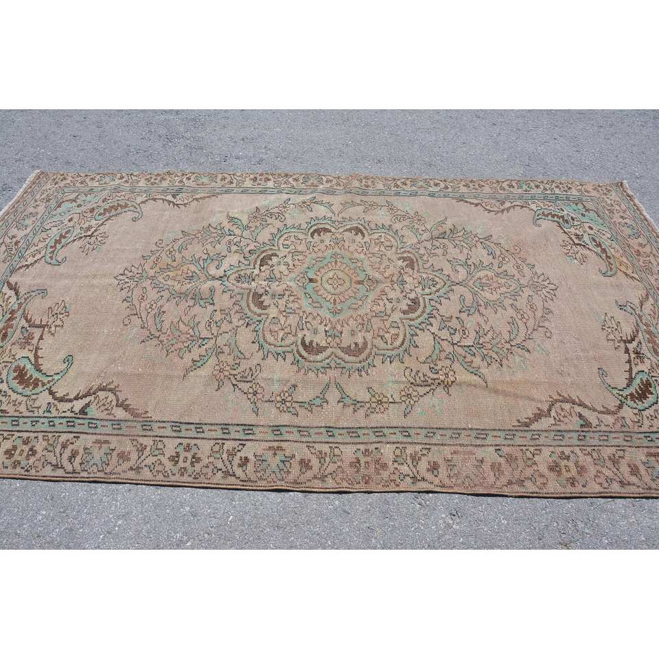 Alfombra turca Vintage tradicional Beige azul 5,3X9,7 pies hecho a mano lana Patchwork diseño abstracto rectángulo patrón felpa látex