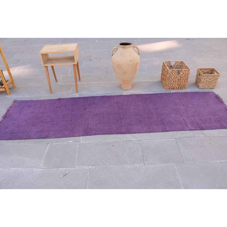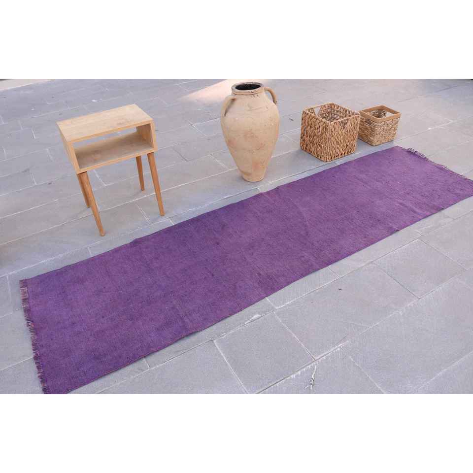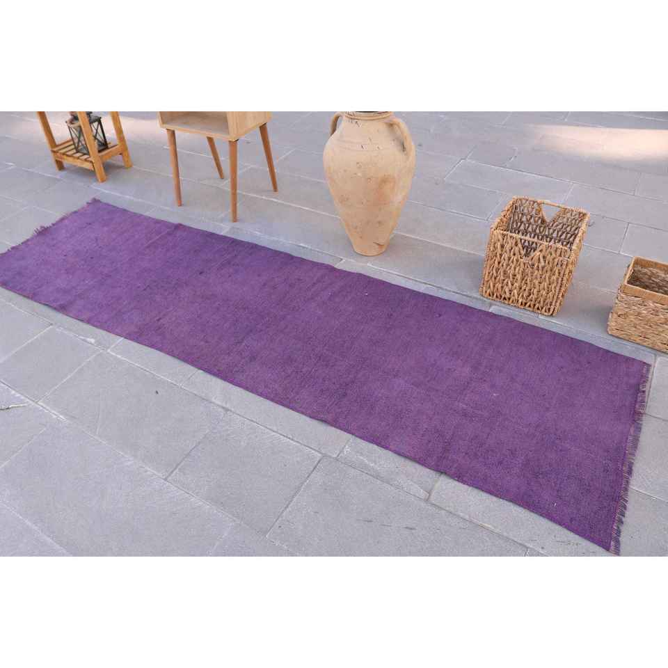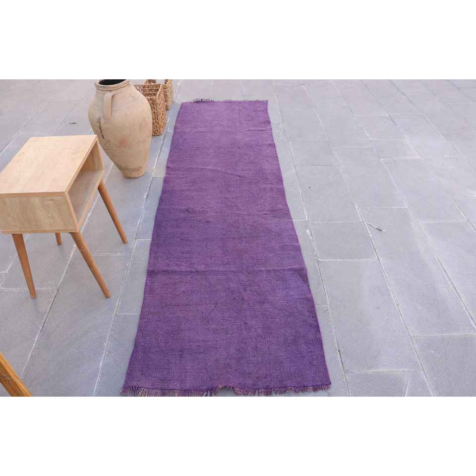Alfombra Turca Vintage de 2.5x8.8 pies, Alfombra de Lana con Rayas Marrón Púrpura