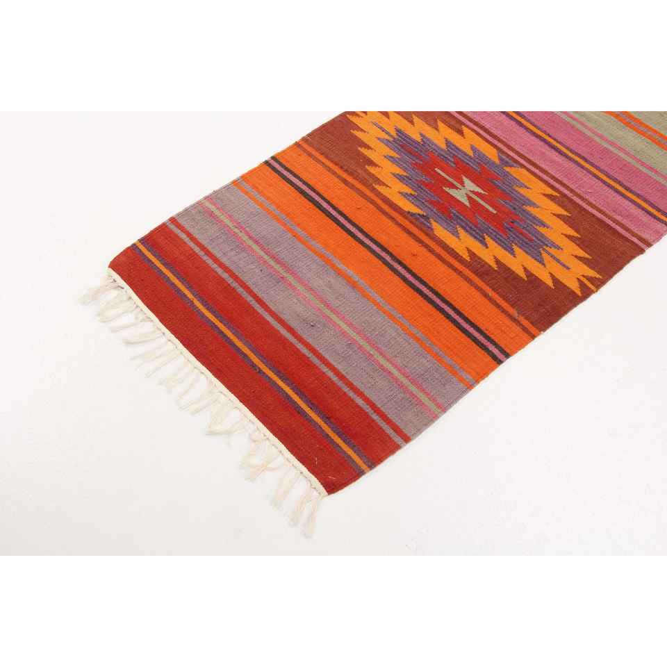 Alfombra turca vintage de 2x9.1 pies (60x277 cm), alfombra roja con lunares