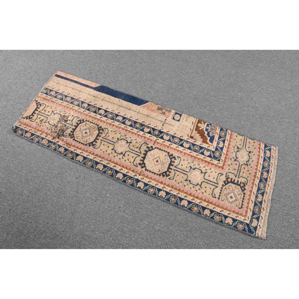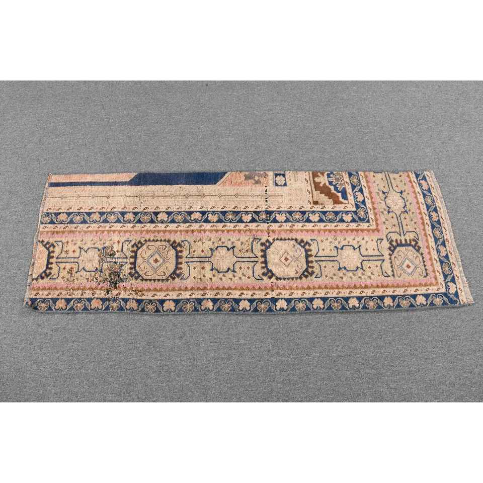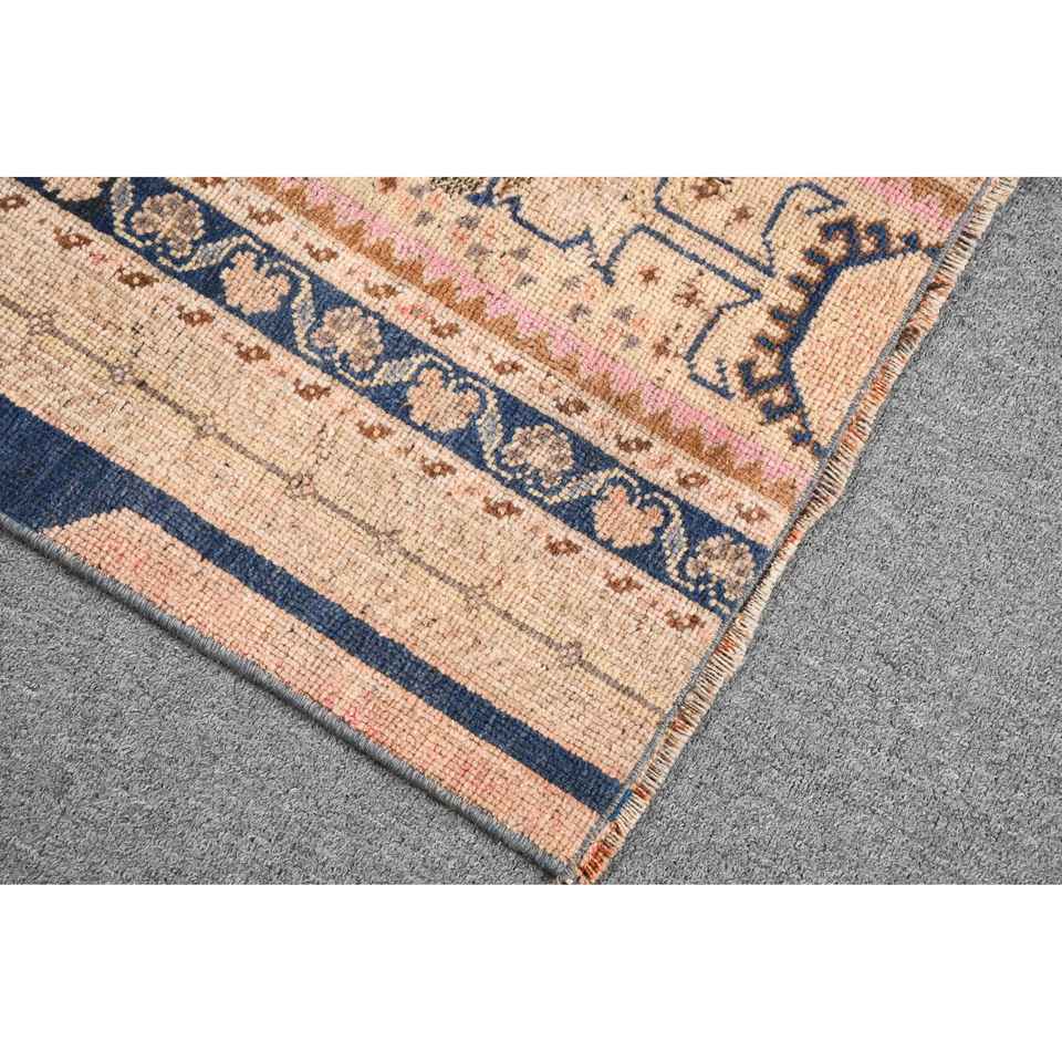 Alfombra Turca Vintage Pequeña de 1.6x4.3 pies, Alfombra Marroquí Azul de Lana